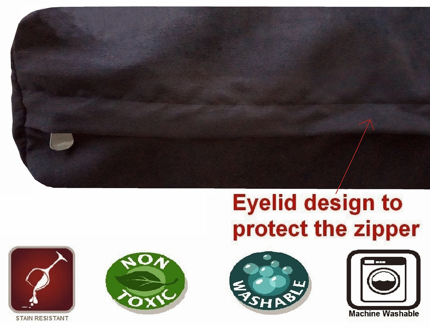 2 excellent layers of fabric covers: Internal layer Taffeta waterproof fabric zipper cover to help secure the pad. The bed also comes with durable Microfiber fabric zipper cover (55'X47'X4' size) for easy cleaning and maintenance. Our external Suede cover is stains, dirt and wrinkle resistant which is interchangeable for top / bottom. The external cover is machine washable and dry-able.
