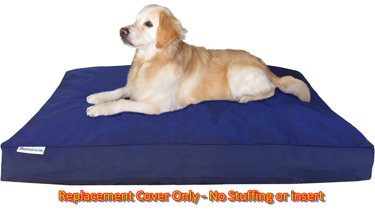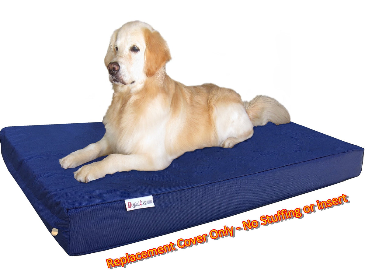 The listing is external replacement cover only without any stuffing or insert. Dogbed4less offers the best material covers for comfort, durability, ease of cleaning, for those tired of a pet bed covers that easily tear, all while blending in seamlessly to your home. This 55X37X4 inch zipper cover in navy blue color is made with super duty 1680 denier ballistic nylon fabric for easy cleaning and maintenance. Our external ballistic cover can resist chewing, scratching, water, hair, dirt, and odors, and can be easily wiped down which is interchangeable at top and bottom sides. The external cover is machine washable and dryable. This listing is for an external replacement cover only, please visit dogbed4less storefront here at amazon for a complete dog bed with memory foam pillow or pad in small, medium, large, XL to XXL jumbo sizes. Our pet bed cover make with high quality 1680 ballistic fabric to ensure the ultimate long lasting comfort. Pets deserve a great cover for less. The size of this cover is designed to fit on dogbed4less XXL sized pet bed products like our 55'X37'X4' pad or 55'X37' pillow. The cover was also designed for easy DIY pet bed creations. Choose your own filler for this cover, this cover for an example can be stuffed with 8 human bed pillows for a quick cost efficient pet bed option. Dogbed4less waterproof liners are recommended to extend the lifespan of any bed including DIY pet beds.