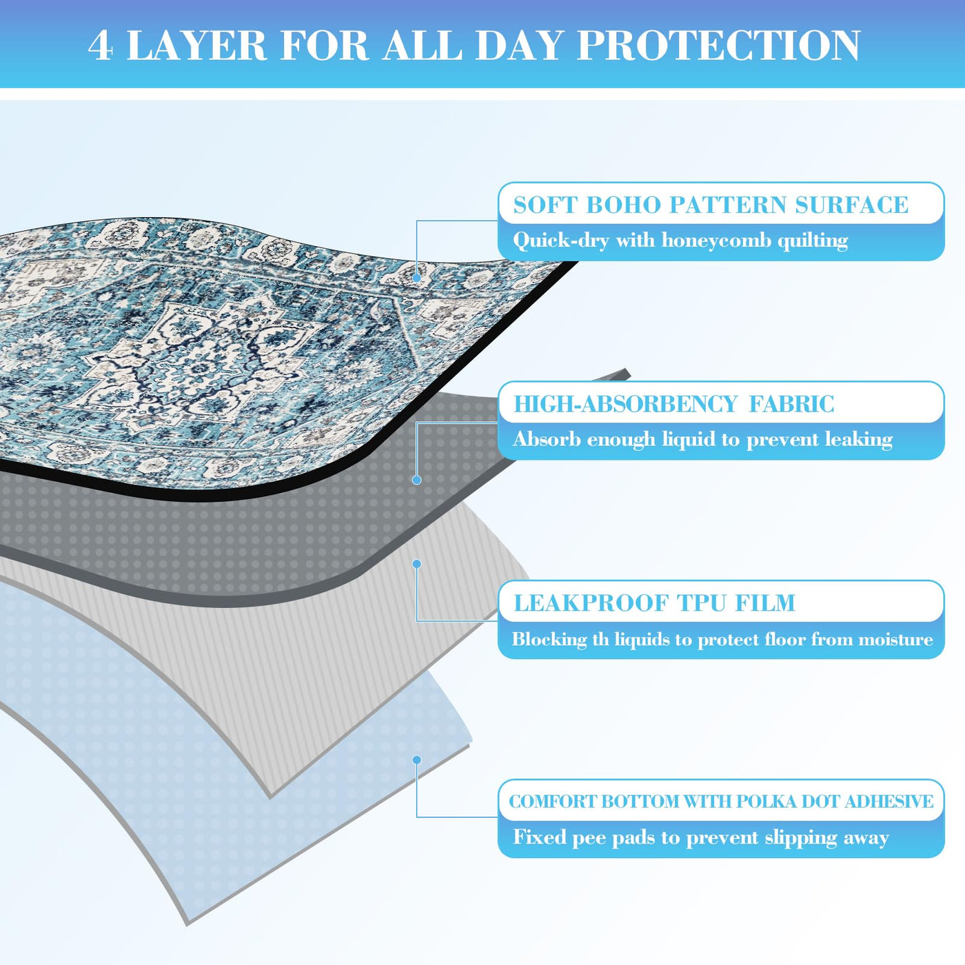 Dogcator Ocean-Blue Non-Slip Dog Washable Pee Pad Extra Large 72'' X 72'', Reusable Pet Training Pad For Dogs, Cats, And Puppies