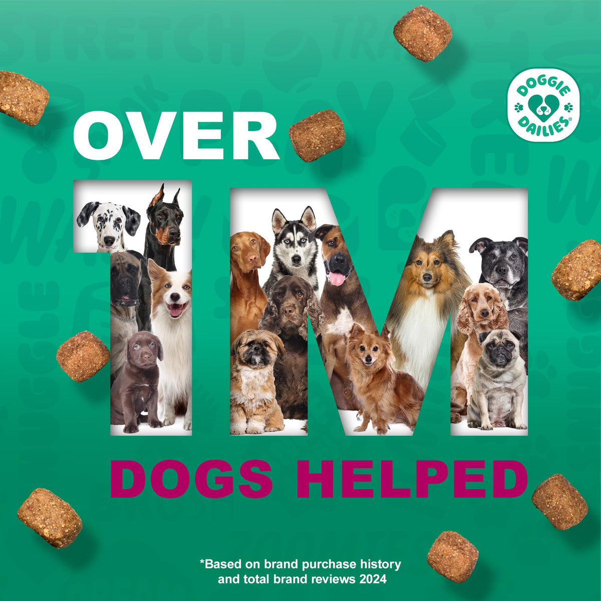 WHAT WERE ALL ABOUT To say we are passionate about dogs would be an understatement. We are dog lovers and proud doggie parents. We believe that when you get a dog they become a member of your family and as their human counterparts, it is our responsibility to provide them with a happy and healthy life. It is that belief coupled with the pride we take in delivering effective, high-quality supplements that make Doggie Dailies truly special. WHAT IS DOGGIE DAILIES SKIN & COAT SUPPLEMENT + ANTIOXIDANT SUPPORT? Weve carefully crafted a dog fish oil supplement to provide essential support that helps promote healthy skin hydration, a glossy coat, hair growth, and strong nails, as well as maintain healthy joint function. Our duck flavored collagen for dogs is perfect for all sizes and breeds. HOW CAN DOGGIE DAILIES HELP YOUR DOG FEEL THEIR BEST? Promotes healthy skin hydration Promotes a glossy coat Supports hair growth and strong nails Helps with excessive shedding Helps protect cells and prevent, or slow, damage to cells caused by free radicals and oxidation Helps maintain healthy joint function.