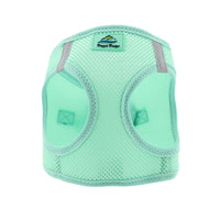 The American River Choke Free Mesh Dog Harness in Teal is sure to be your pet's favorite way of getting around the neighborhood in comfort and safety. This stylish harness is comfortable enough to wear around the house too! Double Safety Closure. Reflective strips for night walking. Fashionable embroidered logo. Patented design. Made of 100% polyester mesh. Machine washable. Why We Love It: American River Ultra Choke-Free Mesh Dog Harness protects pets' vulnerable airways by distributing all pulling pressure over the chest - not the neck. This is particularly important for teacup and small dog breeds prone to damaging their tracheas. Though gentle on your pet, strength is not sacrificed. The double safety closure has touch fastener and a high-strength plastic side release buckle. This harness also includes a Double D-Ring leash attachment for an additional level of strength and safety when used with a leash. Simple and easy to use! Have your pet step in the leg holes, wrap the fabric up and around the back, smooth the touch fastener and clip the buckle. When using with a leash, clip through both D-rings. Do you have a hard-to-fit dog or cat? This harness can be customized with wide touch fastener fabric that can be swiveled at an angle to adjust to most any pet. Experiment with the angle of the hook and loop fabric to find the best fit to prevent any gaps in the fabric. This will keep your pet safe and comfortable. The mesh fabric is sturdy, soft, and breathable, making it ideal for most any climate. Reflective strips are included for better visibility in low-light conditions. This Ultra Choke Free Harness is the perfect design for use as a dog seat belt harness to keep your pet from interfering with your driving. The choke-free design will provide your pup extra safety in the event of an accident. Made of 100% soft mesh polyester. Machine wash and line dry.