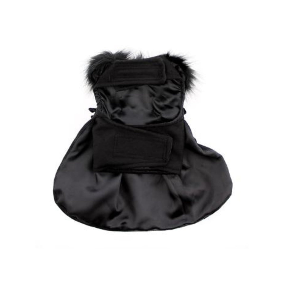 Doggie Design Black Wool And Silver Fur Collar Harness Coat Xs