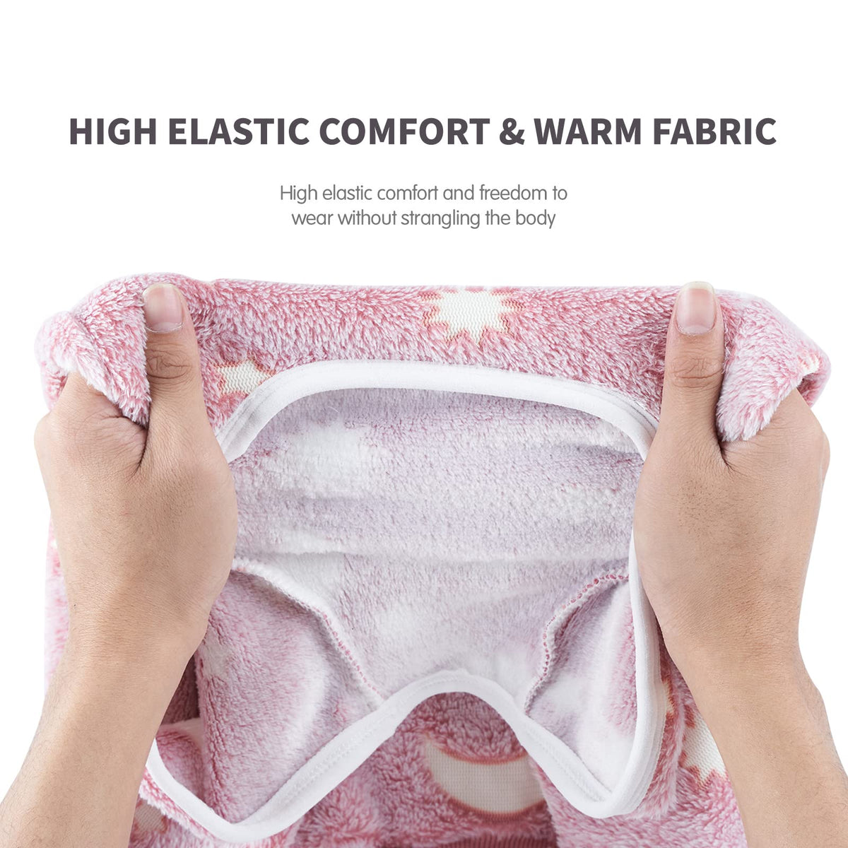 ??High Quality Material:The polar fleece material is not easy to fall off or fluff and has strong elasticity so it is easy to put on and take off and it will not make the dog feel too restrained the dog winter onesie is comfortable and keep warm for your dog when it sleeping or outgoing.