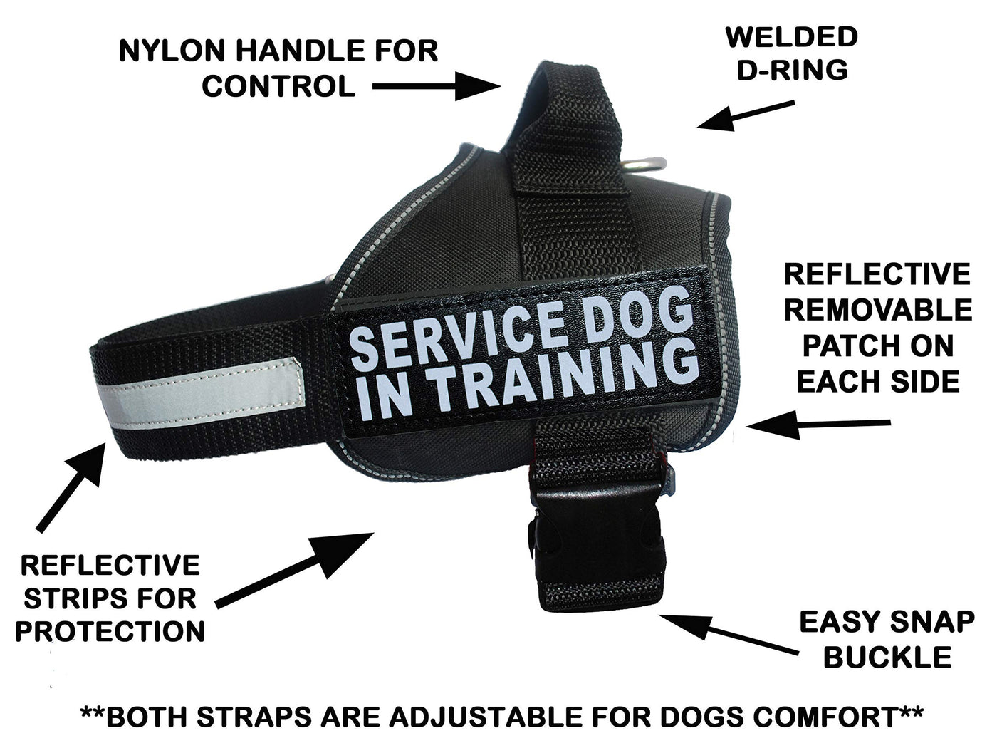 Q: How does the reflective feature enhance safety?A: The harness includes reflective strips and lettering on both sides, providing increased visibility during low-light conditions. This is especially beneficial for service dogs and their handlers who may be out during early morning or evening hours.