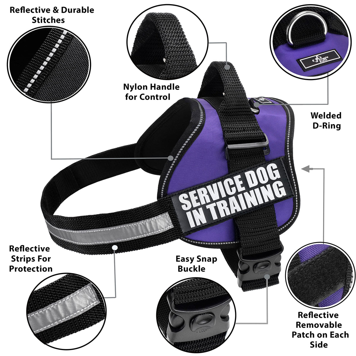 Doggie Stylz Service Dog In Training Vest With Hook And Loop Straps And Handle – Harness Comes In Sizes Xxs To Xxl – Three Colors – Dog Harness Features 2 Reflective Patches (Girth 19”-25' Purple)
