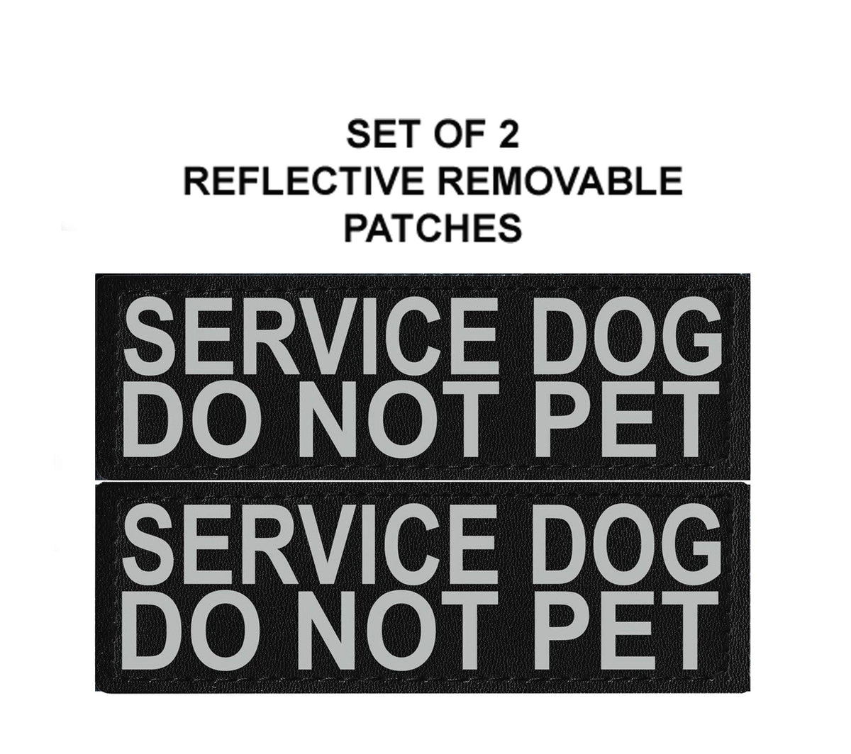 Doggie Stylz Set Of 2 Reflective Service Dog Do Not Pet Removable Patches With Hook Backing For Working Dog Harnesses & Vests. Durable And Interchangeable - Comes In 3 Sizes Small, Medium And Large