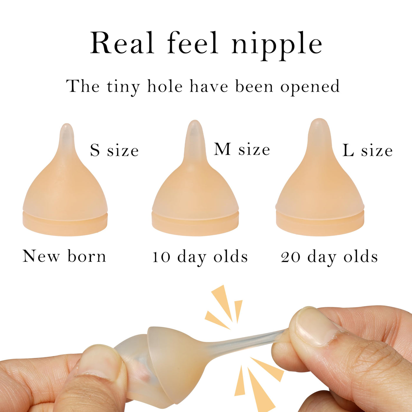 The 60ML milk bottle is specially designed for kittens, with three sizes of pacifiers suitable for kittens at different stages The bottle designed with a tilt of 45 degrees is the most comfortable and natural angle for feeding kittens The nipple that has been perforated is made of liquid silicone, which feels and feels like a mother Bottle ventilation system can reduces colic, A safety protection like giving a human baby The product includes 1*60ML bottle,1*5ML syringe,1*small nipple,1*medium nipple and 1*large nipple.