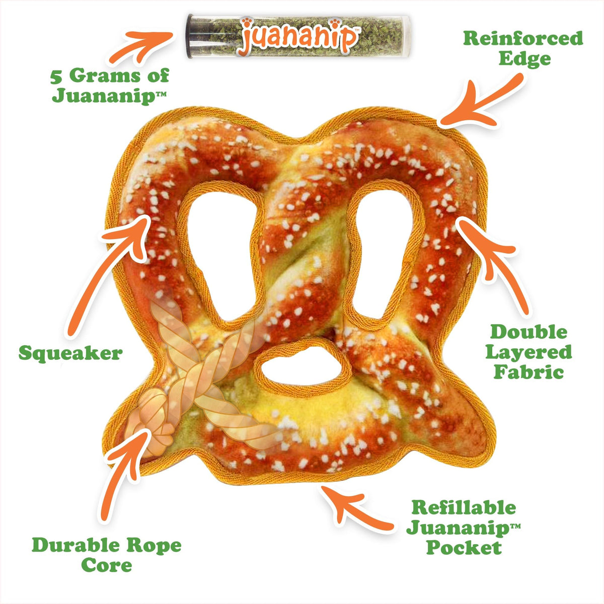 Introducing The Doggijuana Tuffer Chewer Refillable Pretzel Toy The Perfect Solution For Dog Owners Looking For A Durable Calming Chew Toy That Promotes Both Mental And Physical Enrichment. Designed For Medium To Large Breeds That Love To Chew Tug And Fetch This Innovative Toy Is Built To Withstand Rough Play While Keeping Dogs Entertained For Hours. Made With Strong Fabric A Reinforced Rope Core And Double-Stitched Edges It Offers Lasting Durability For Even The Most Enthusiastic Chewers. A Key Feature Of This Toy Is The Refillable Juananip Pocket Allowing You To Add Organic Juananip A Natural Herb With Calming Properties. This Scent-Driven Element Enhances Playtime By Engaging A Dog'S Powerful Sense Of Smell Providing A Stimulating And Rewarding Experience. The Enticing Aroma Encourages Interactive Behavior Making It An Ideal Toy For High-Energy Dogs That Need Both Physical Activity And Mental Stimulation. The Pretzel-Shaped Design Provides An Interactive Play Experience While Also Promoting Relaxation Making It Perfect For Pets Needing Both Excitement And Soothing Relief. Whether You Have A Playful Pup Or A Dog That Needs A Calming Outlet This Toy Supports Longer Play Sessions Helping To Reduce Anxiety And Encourage Positive Behavior. It Integrates Seamlessly Into Multi-Dog Homes And Is Great For Teething Puppies As Well As Active Adult Dogs. Ideal For Pet Parents Seeking A Holistic Approach To Enrichment The Doggijuana Tuffer Chewer Pretzel Toy Is More Than Just A Chew Toy. It Offers Dogs An Engaging And Calming Activity That Supports Overall Well-Being. Treat Your Pet To The Benefits Of This Unique Toy And Watch Them Enjoy Endless Hours Of Fun And Relaxation.