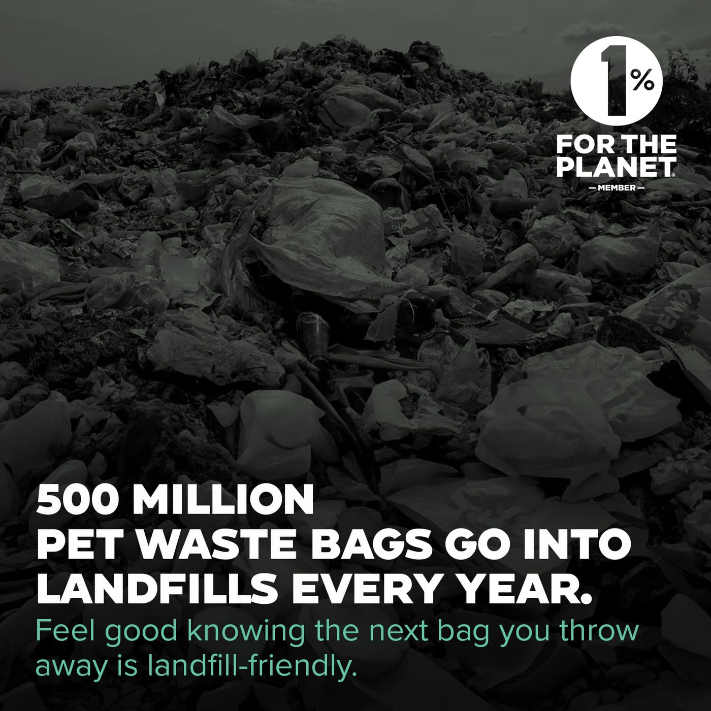 Doggy Do Good Poop Bags: Simplify your pet care routine with our disposable poop bags for dogs. Each pet waste bag is generously sized to handle dog waste and provides ample space for a clean and easy pick-up. Made with 65% recycled plastic, these animal poop bags are the perfect choice for conscientious pet owners who care about the environment. Engineered to be landfill friendly, our pet bags for poop are formulated toaccelerate the end of the life cycle for plastics in environments such as landfills, oceans, and soil. This natural process of plastic is accelerated from hundreds of years to just 3 to 5 years. This feature makes our unscented dog waste bags not just convenient, but also a responsible choice for the planet. The material of our thick dog poop bags prevents tears and leaks, ensuring that you can handle waste without any mess. Whether you're at the park, on a walk, or in your backyard, these pet trash bags provide reliable containment for dog waste. Each of our dog poop bag rolls is designed with perforated lines for quick and easy tearing, so you can grab a bag and go with little effort. These strong and easy open dog poop bags are an essential item for any dog owner. By incorporating recycled plastic, we help reduce waste and promote a healthier environment. These dog plastic bags are not only practical and durable but also reflect a commitment to provide the best choice for people, pets, and the planet.