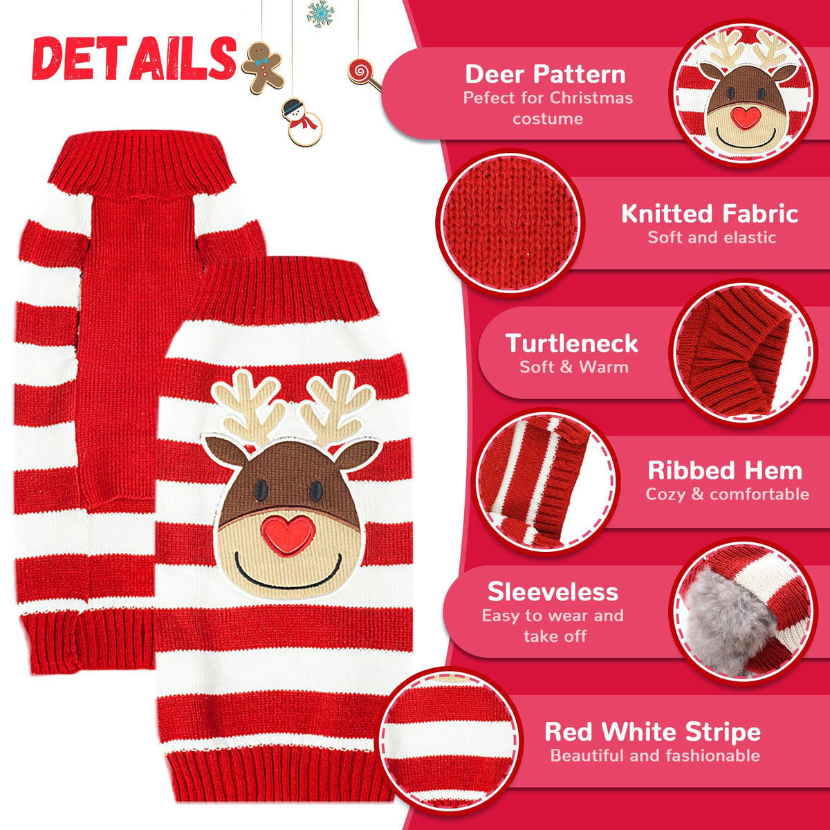 Cute Stripe Reindeer Christmas Dog Sweaters For Small Medium Large Dogs Xxs-Xxl All Ready For The Christmas Holidays! ?Christmas Gift For Pet? --- Dog Knitwear Suitable For Pet To Wear On Christmas,Perfect As Your Pooch'S Reindeer Xmas Gift For The Coming Christmas Day! ?Christmas Costume For Dog Cat? --- Unique Design.Stylish Christmas Reindeer Design In White And Red Stripe. Make Your Pet Attractively On The Street With This Costume! ?Winter Warm Pet Christmas Sweater? --- Soft Dog Sweater With High Slight Elasticity ,Easy To Put On And Take Off .Perfect For The Cold Winter Clothes For Your Lovely Dogs Or Cats. ?Soft Materials?Made Of 100% Acrylic.Have A Slight Elasticity.Cosy And Warm.We Recommend Normal Hand Wash, Unfavorable Chlorine Bleaching And Soak For A Long Time.
