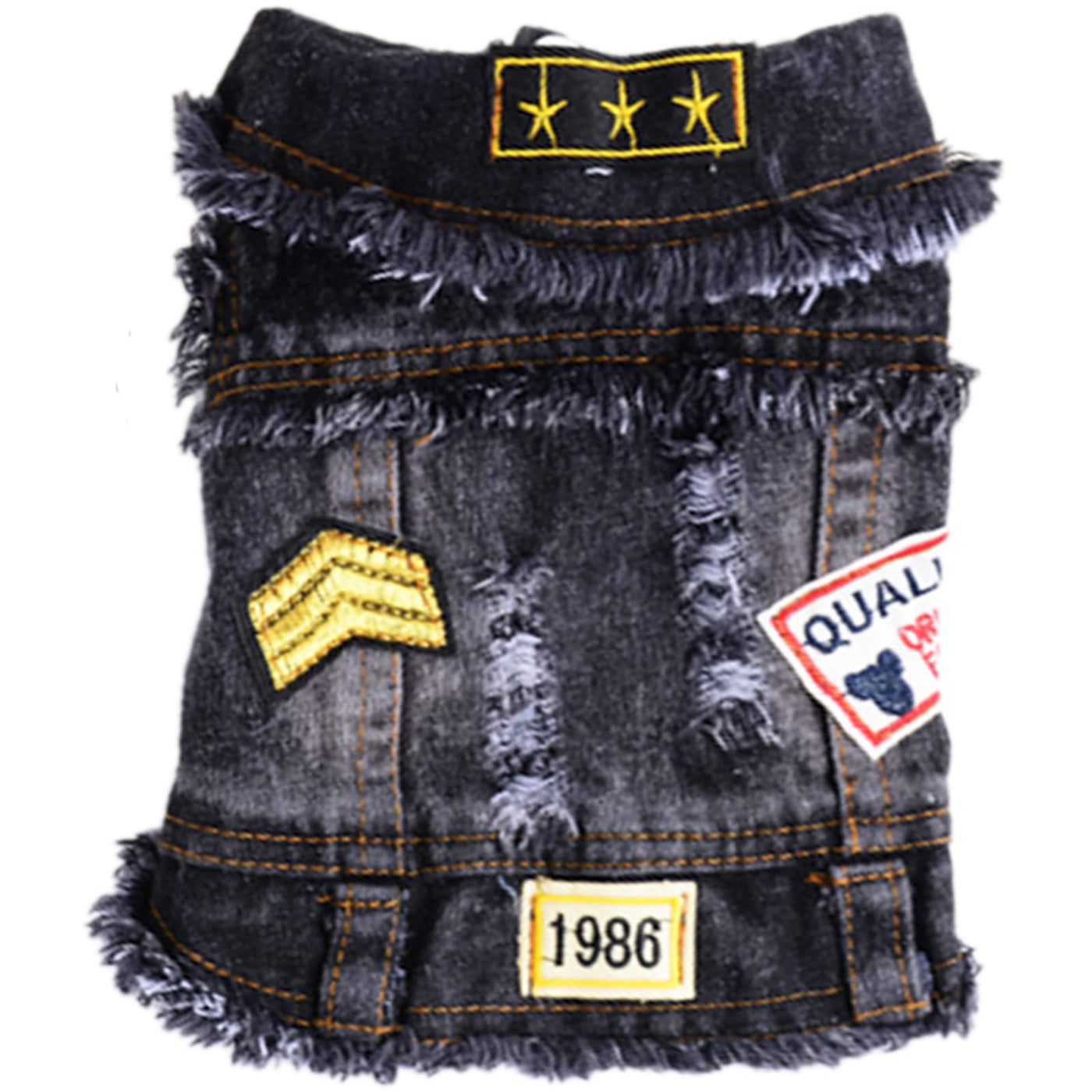 Doggyzstyle Pet Vests Dog Denim Jacket Hoodies Puppy Jacket For Small Medium Dogs (L, Black Print)