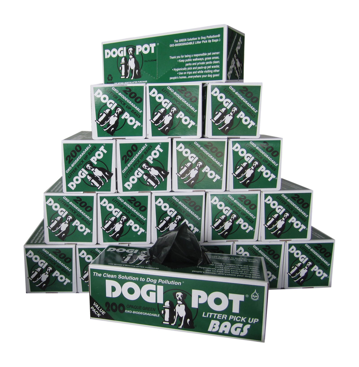 Q: How many bags are included in each roll of the DOGIPOT litter bags?A: Each roll of the DOGIPOT litter pick up bags contains 200 bags, and with 20 rolls in the case, you get a total of 4000 bags.