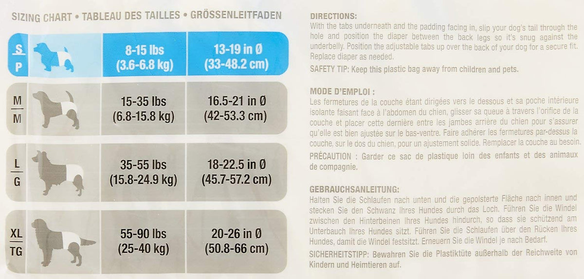 Dogit Clean Disposable dog diapers provide comfortable and reliable protection against leaks due to incontinency excitable urination females in heat and dogs recovering from lower body surgery. Ideal for preventing messy stains in homes or vehicles during travel the diapers are super absorbent and provide a secure leak-resistant fit thanks to convenient stick-on tabs.