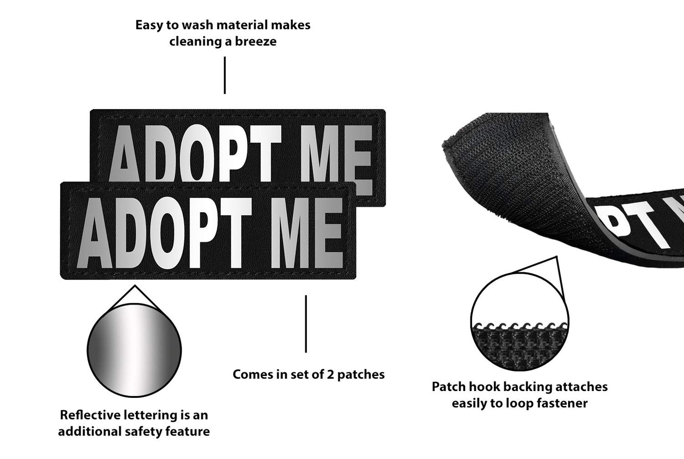Dogline Adopt Me Vest Patches – Removable Adopt Me Patch 2-Pack With Reflective Printed Letters For Support Dog Vest Harness Collar Or Leash Large/X-Large