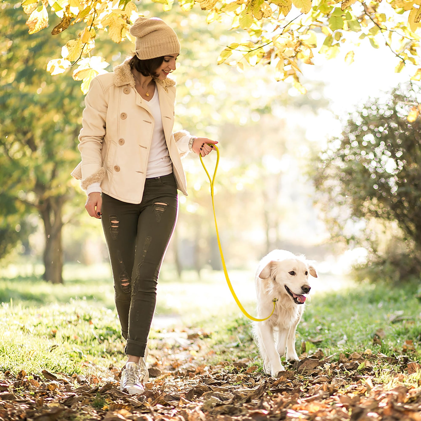 Dogline Biothane Slip Dog Leash - For Small, Medium And Large Dogs - Odor Free Slip Lead, Heavy Duty And Durable Material Kennel Lead - Lemon Yellow - 5Ft L X 5/8In W