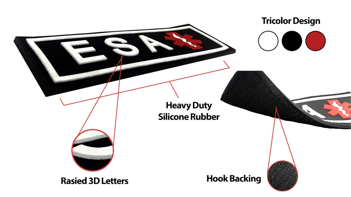 Your Dogs Deserve All The Care And Attention They Can Get, That Is Why Getting Them A Quality Dog Patch Will Be Such A Great Decision With This Patch Securely Fitted On A Harness For Your Dog, People Can Easily Identify Its Function Anytime And Anywhere And When All You Need Is A Quality Esa Patch That Fits Your Emotional Support Dog Perfectly, You Would Not Go Wrong To Give Our Esa Patch A Tryfrom Design To Finishing, Our Dog Harness Patches Have Been Uniquely Designed To Fit Your Emotional Support Dog More Than This, Our Esa Patches Features A Hook Backing That Allows Dog Parents To Easily Change The Identification On Their Emotional Support Dog Vest Or Harness Within Minutesthat Is Not All Our Esa Harness Patches Come With Unique 3D Design Visible Form The Distancemade From Quality Silicone Rubber Our Esa Dog Patch Is Built To Last, Little Wonder Why Most People Prefer It To Regular Dog Harness Patches As A Matter Of Fact, Its Finishing Makes This Esa Patch A Must Have, And Unlike Embroidered Dog Patches, Our Esa Patch Will Not Get Caught On Objects, And The Threads Will Not Come Off Easily Or Unlike Printed Patches, Letters Will Not Rub Offand Because Our Esa Patch Can Easily Be Removed, You Can Easily Use It On Any Dog Harness Without Going Overboard With Your Budget For Dog Parents Looking For An Emotional Support Dog Patch That Lives Up To Its Promises, You Will Not Go Wrong To Give Our Esa Patches A Try