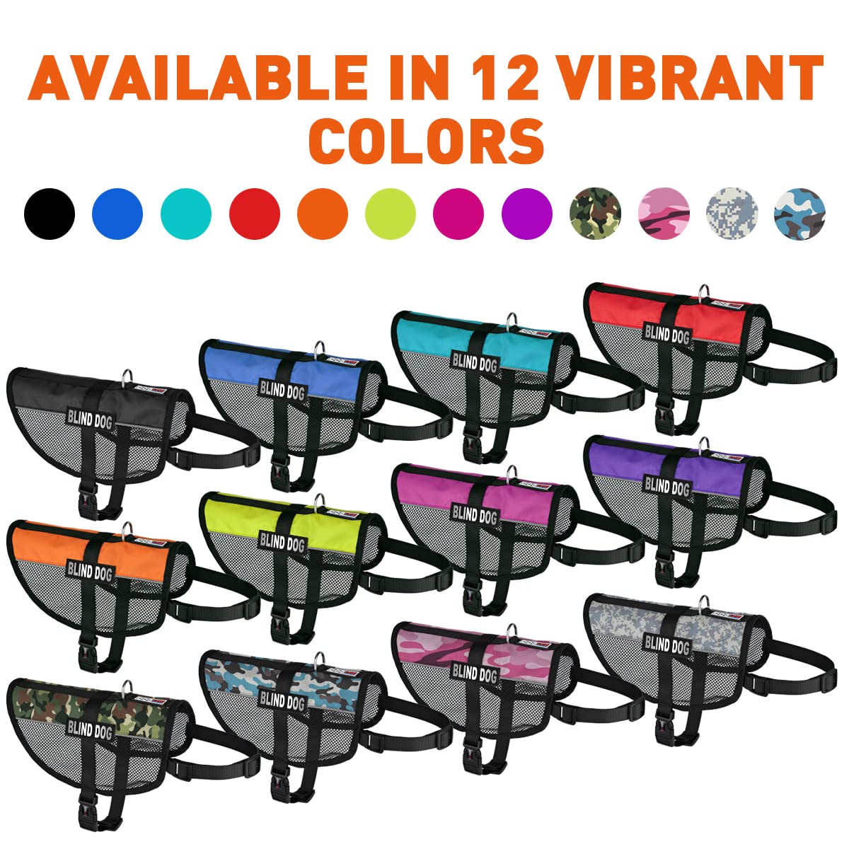 Dogline MaxAire Multi-Purpose Mesh Dog Vest with Blind Dog Removable Patches. These vests are perfect for service dogs, training dogs, Blind Dogs, medical alert dogs and much more. The MaxAire vest is made of a lightweight, yet strong mesh that breathes to keep your pet comfortable. In fact, it is one of the lightest service animal vests on the market and is ideal for warmer climates! Vest offers a reflective stripe on both sides along with the ability to affix 2 side patches. The vest features adjustable straps and a stainless steel D-ring for leashes and ID tags. This vest is also easy to put on and take off with help of a quick release buckle. Please measure your dog's girth behind front legs at the widest point before ordering. Please see sizing picture for further instruction.