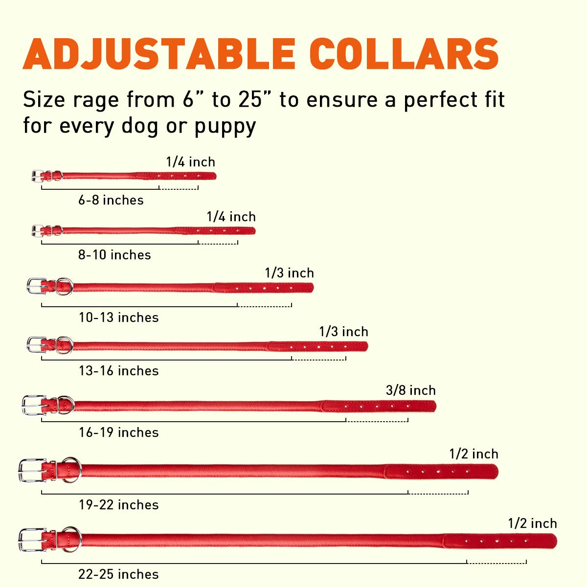 Only The Best. Unlike Inferior Dog Collars, These Premium Soft Dog Collars From Dogline Are Made From The Highest Grade Materials. We Researched Common Complaints About Other Collars And Carefully Crafted One Of The Best Rolled Leather Dog Collars On The Market. With Meticulous Craftsmanship And Unparalleled Commitment To Quality, Dogline Leather Dog Collars Are Second To None. A Cut Above The Rest. Weve Thought Of Everything. Heres What Makes Our Collars Special: Tough: Each Dog Collar Features Wax Coated Stitching, Making It Super Strong. Practical: Our Collars Come In Seven Sizes, Suitable For All Breeds Of Dog. Vibrant: These Quality Dog Collars Feature Real Dyed Leather, Not Painted - The Color Really Pops. Handcrafted: Each Leather Rolled Collar Is Made With The Finest Attention To Detail. Durable: A True Strong Dog Collar That Wont Break. Safe For Your Dog. Each Dogline Luxury Dog Collar Features A Nylon Core, Encased In An Exterior Padded Leather. The Unique Design Of Our Rolled Dog Collar Is Free From Rivets, So It Will Never Snag On Your Dogs Coat Or Accidentally Hurt Them. Superior Strength Buckle. The Buckle On Our Collars For Dogs Are Made From Solid Metal With A Protective Coating. Designed To Withstand The Strength Of Big Dogs, And Pups With A Lot Of Energy, This Soft Leather Dog Collar Is Built For Rough And Tumble Fun.