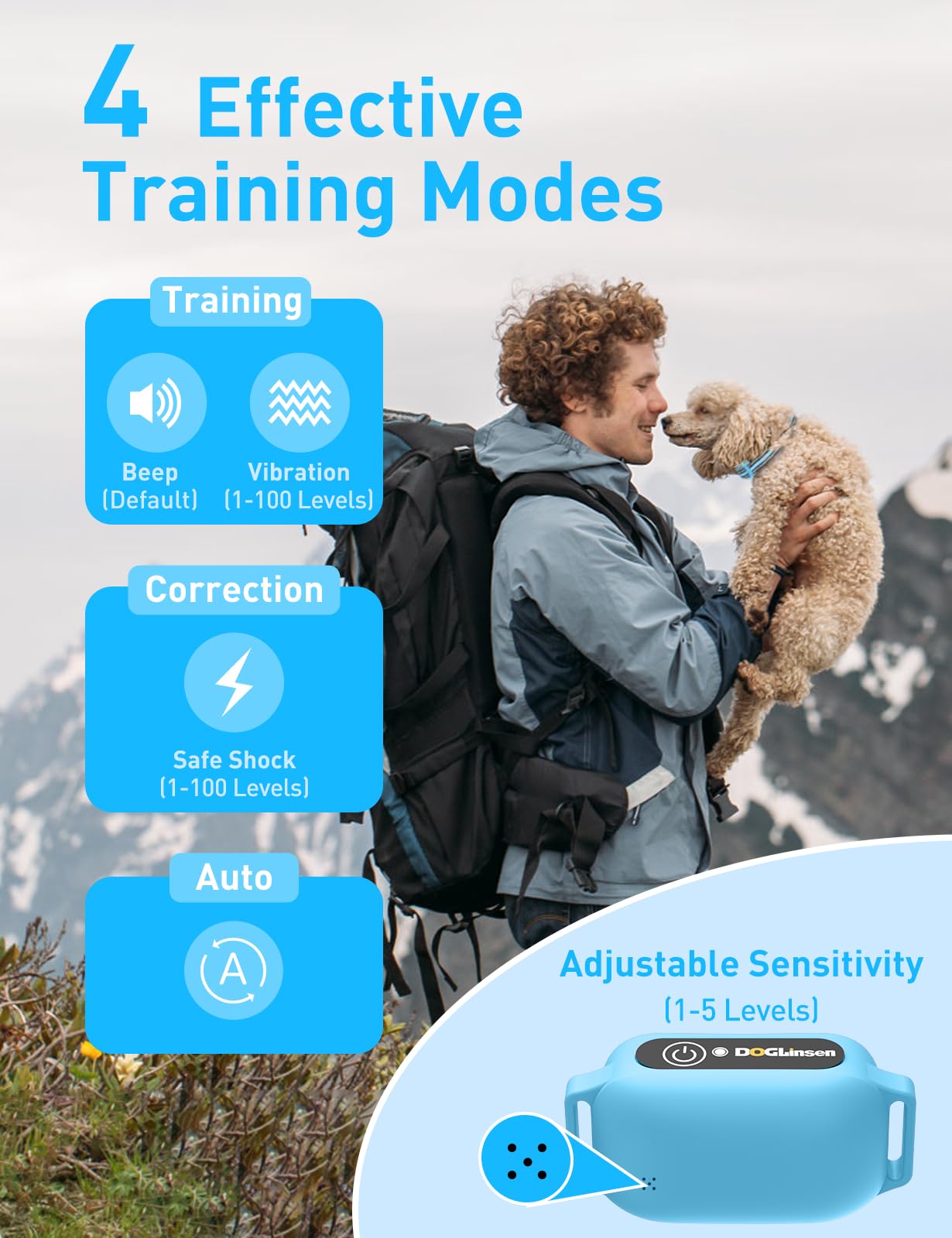 Doglinsen Bark Collar With Remote, Automatic Bark And Training Collar Combo, Bark Collar For Small Medium Large Dogs, Vibration, Beep, Static Shock And Auto Bark Mode