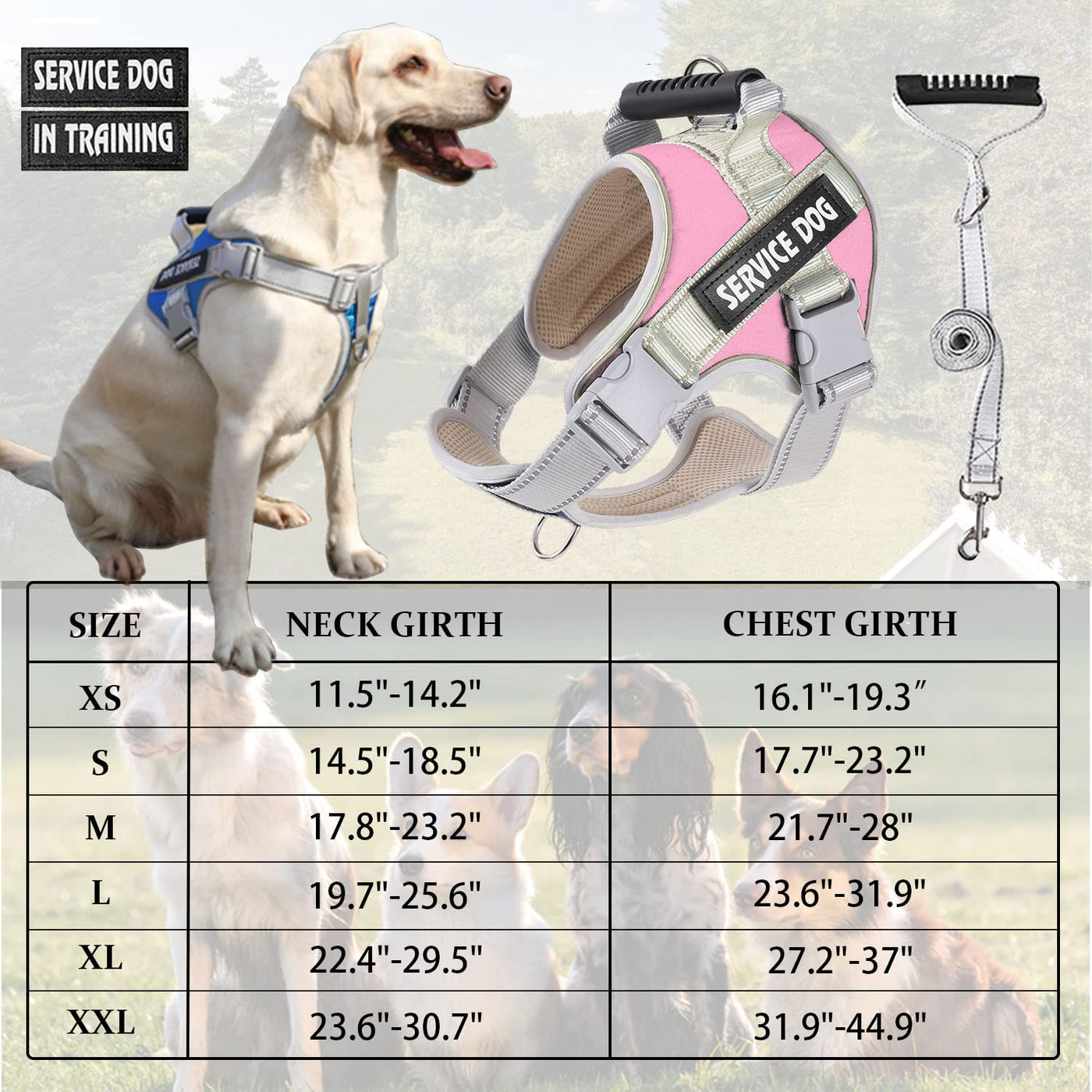 🔥 Reinforced Stitching- Pet dog harness and Leashes sturdy,good quality.Comes with 2 SERVICE DOG patches and 2 IN TRAINING patches.