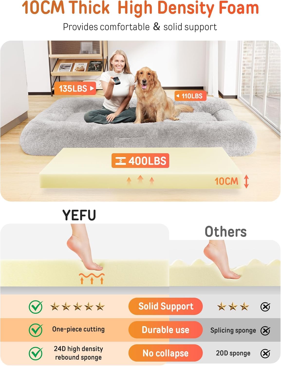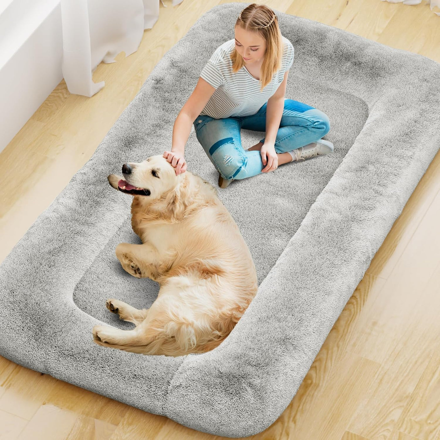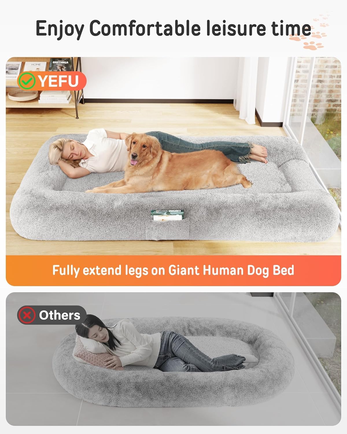 Our Human Dog Bed Provides A New Way For Adult And Pets To Enjoy Better Rest And Nap. The Fluffy Fur And Rich Foam Wraparound With Bottom Of Our Human Dog Bed For Adult Makes It Just Like Lying In Mom'S Arms. The Human Dog Bed For Adult Also Allow Multiple Kids, Pups Or Cats, Or Children With Parents To Nap Or Play On It, The Anti-Slip Bottom Will Make It Saft For All The Time. You Could Place It In Living Room Or Bedroom, And Move It By Durable Handle To Any Indoor Room You Would Like, Such As Lounge And Even In The Office. Also, Please Never Worry About Clean It, Since The Human Size Dog Bed Come With Removable And Machine Washable. Enjoy Your Time With Your Pets Freely Now!