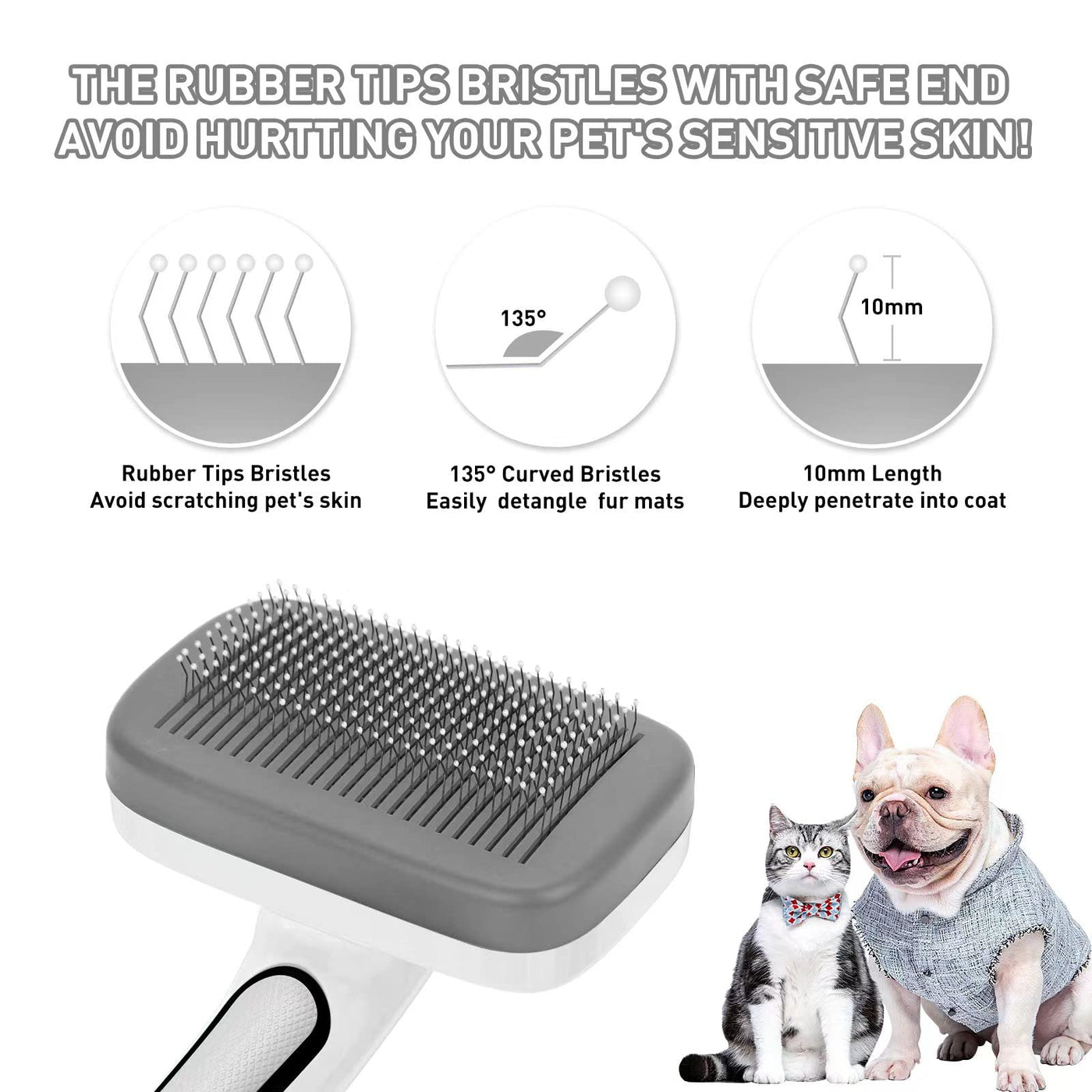 Dogs Cats Self Cleaning Slicker Brush For Shedding & Grooming Any Breed Of Pets, Pain Free Remove Loose Undercoat Knots Mats Tangled Hair For Small Medium Large Animal With Long Short Fur Length-Gray