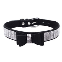 Dogs Kingdom 10''-24'' Length Cute Pet Dog Velvet Bow Tie Collar Puppy Cat Full Crystal Rhinestone Necklace Adjustable,Black,Xs