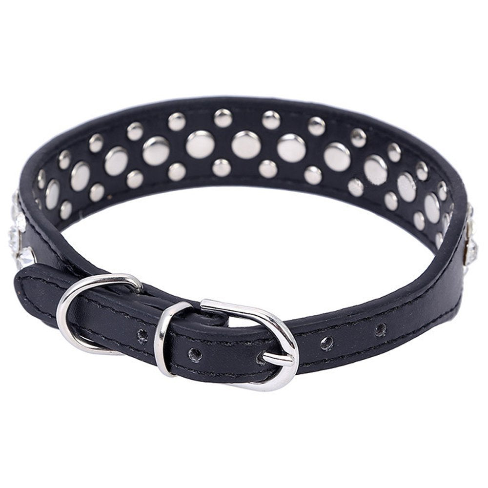 Dogs Kingdom 10-24 Length Personalized Rhinestone Leather Bling Crystal Pet Dog Cat Collars For Small Medium Breeds Blue Xxs