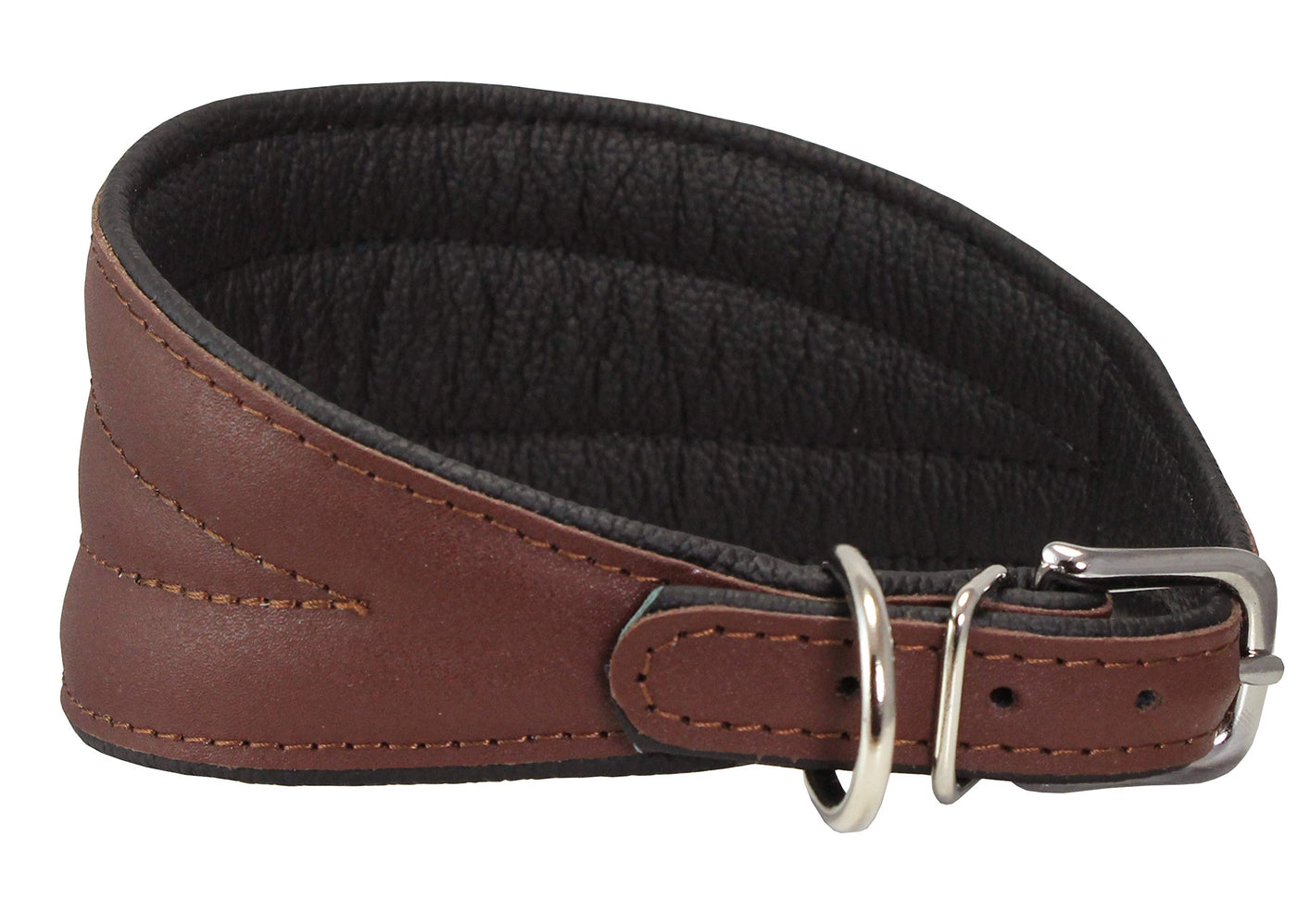 High quality 100% genuine leather top surface. Strong, durable, pliable, and very comfortable dog collar for every day use. Soft leather lining provides comfortable cushioning feel. Smooth and elegant look. Available in multiple colors. Features solid nickel plated hardware. 6 available sizes recommended for Greyhound, Saluki, Deerhound, Lurcher, Whippet, Dachshund, and other breeds with similar long neck/slender head structure. Please measure dogs neck to ensure you order the correct size.