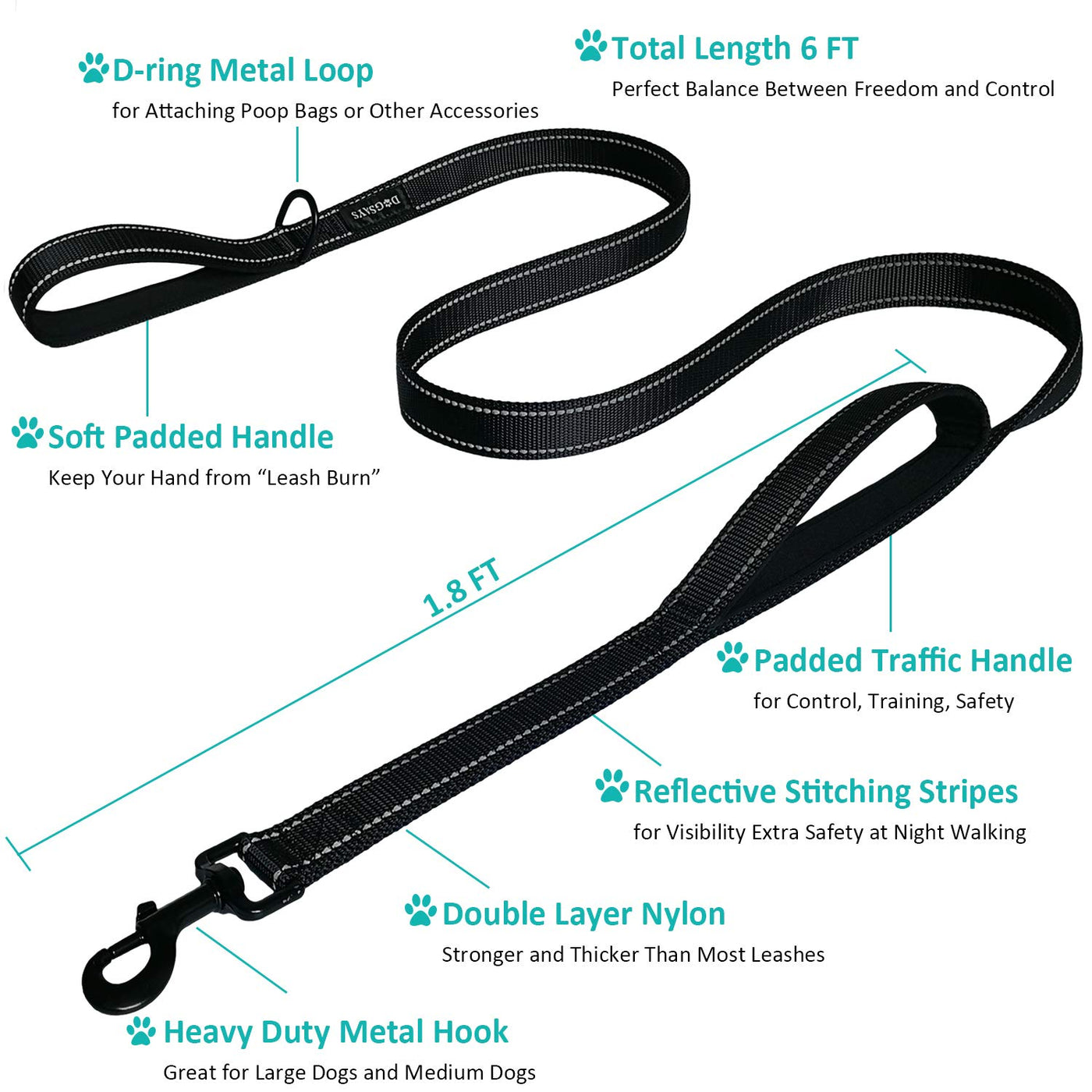 Dogsays Dog Leash 6 Foot Long Traffic Padded Two Handle Heavy Duty Double Handles Lead For Large Dogs Or Medium Dogs Training Reflective Leashes Dual Handle (6 Foot (Pack Of 1), Black)