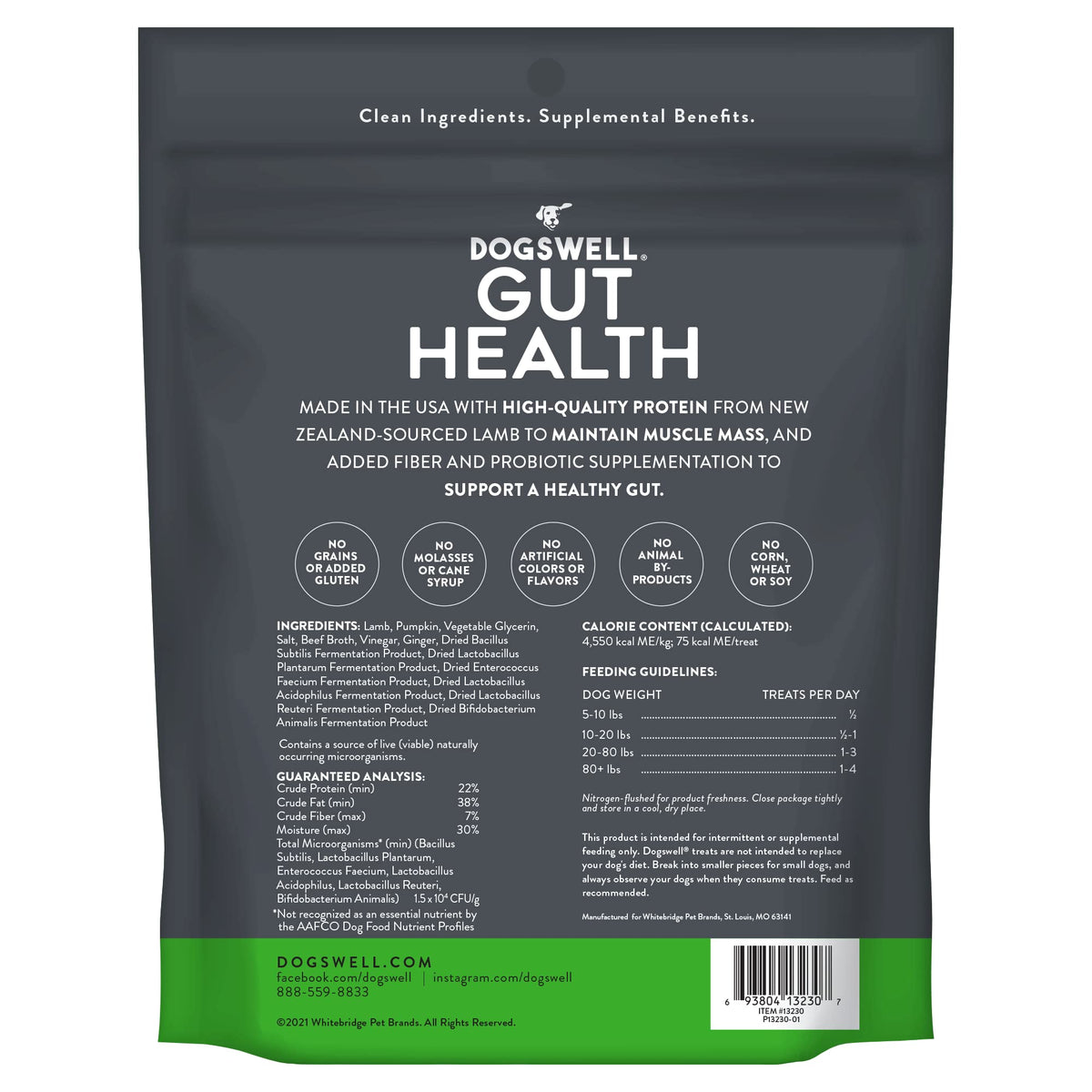,Your dog will love this delicious jerky made in the USA with high-quality protein from New Zealand-Sourced Lamb with added fiber from pumpkin and live cultures of probiotics to support gut health Ingredients:,Lamb, Pumpkin, Vegetable glycerin, Salt, Beef Broth, Vinegar, ginger, Dried Bacillus Subtilis Fermentation Product, Dried Lactobacillus, Plantarum Fermentation Product, Dried Enterococcus,Faecium Fermentation Product, Dried Lactobacillus, Acidophilus Fermentation Product, Dried Lactobacillus, Reuteri Fermentation Product, Dried Bifidobacterium, Animalis Fermentation Product contains a source of live (viable) naturally occuring microorganismsFlavor:,Lamb