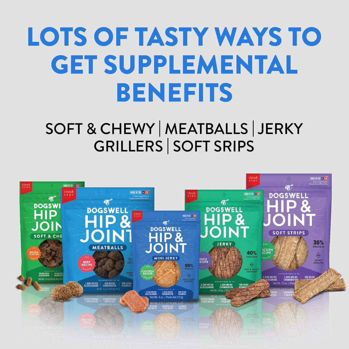 Support your dogs active lifestyle with a soft & chewy treat that tastes good and does good. High-quality protein from chicken maintains muscle mass and delivers a meaty flavor dogs love while vitamin E, glucosamine, and chondroitin work to promote your dogs hip and joint health now and into the future.