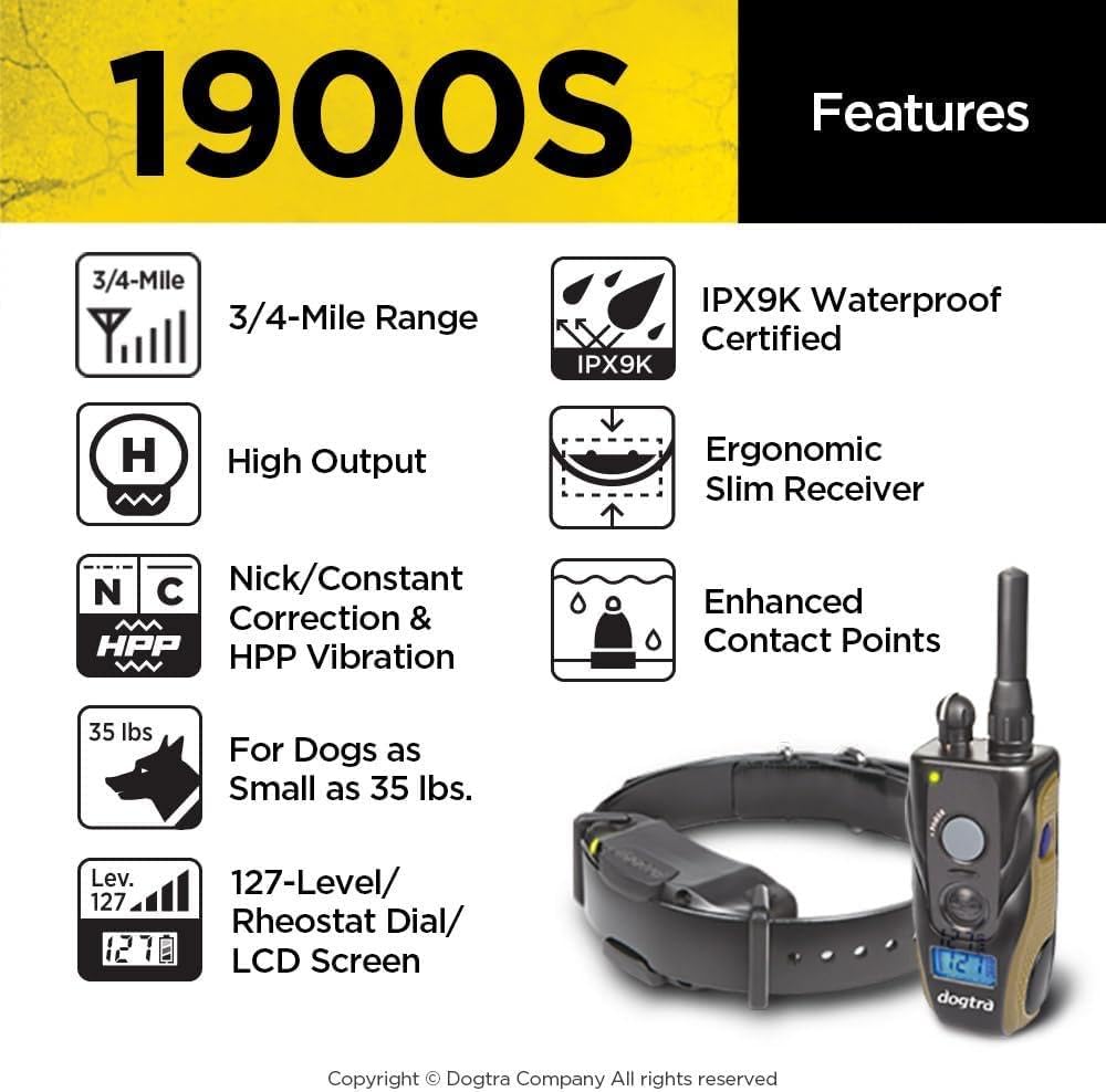 Q: What is the range of the Dogtra 1900S e-collar?A: The Dogtra 1900S e-collar has an impressive range of 3/4 mile, making it suitable for various training scenarios, including obedience training, hunting, and K-9 applications.