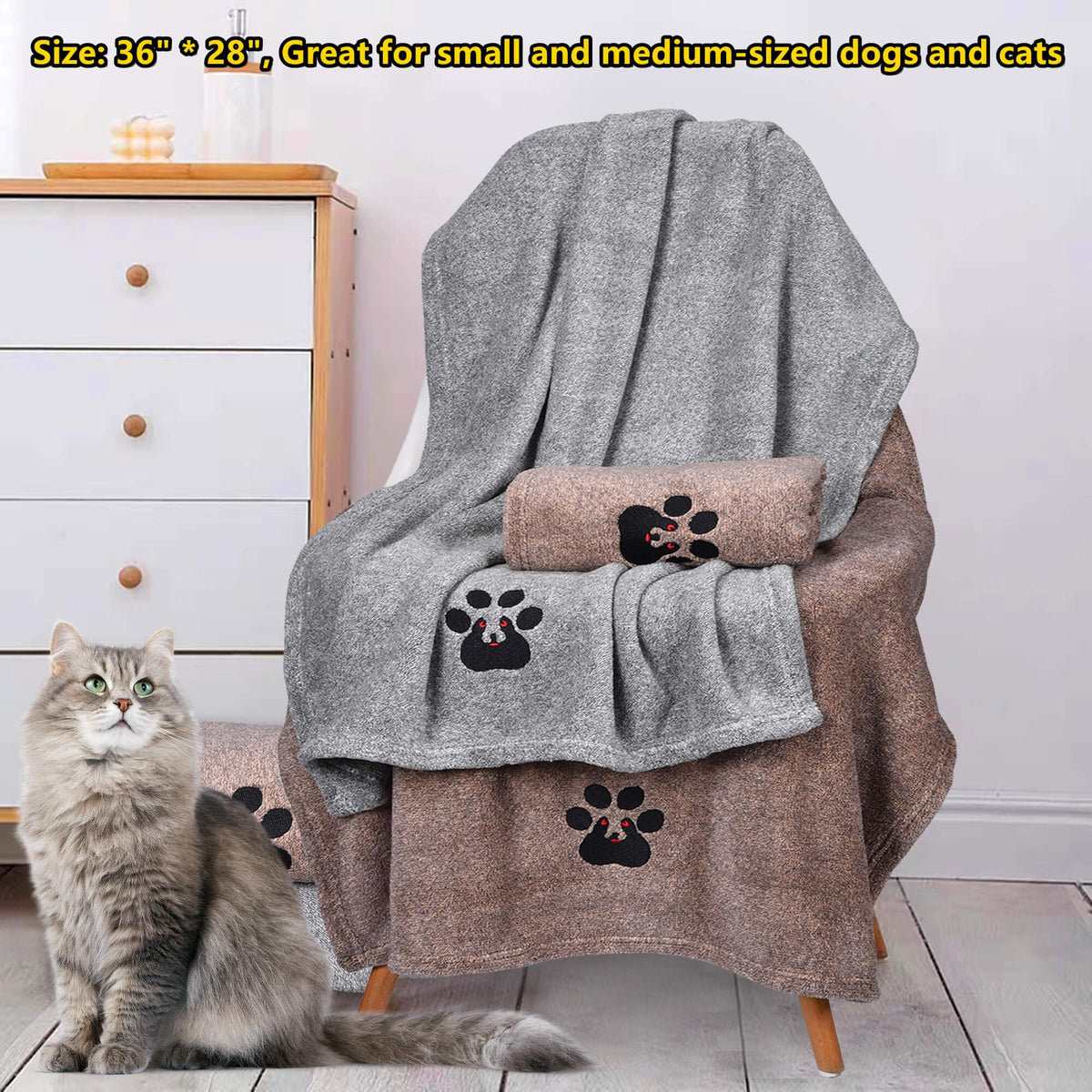 Material: microfiber. Easy to use and carry. 1. Oversized absorber dog towel travels sports. 2. The towel is soft and lightweight. It s an extremely nice quality good absorption dog boating towel, too. 3. The large size, plush length, and density of the towel are also very suitable as a pet blanket. It can be spread on the ground, sofa, or doghouse to keep pets warm and comfortable. Unique design. 1. Double-colored design, make the towel more fashionable and beautiful! 2. Unique paw-shaped embroidery design, it looks like a cute dog paw, and a very interesting dog head from a distance, and interact with the dog! Multipurpose great absorbency dog dedicated supplies accessories, A must-have for dogs. Easy to maintenance. 1. No fading and no fluff, machine washing, drying, or natural air drying! 2. Do not iron, bleach, soften, and do not wash with hot water. 3. When washing a bath towel for the first time, it is recommended not to use any detergent. Ultra absorbent dog towel great for Poodle, Chihuahua, Pomeranian, Corgi, Chihuahua, Pug, Bunny, guinea pig.