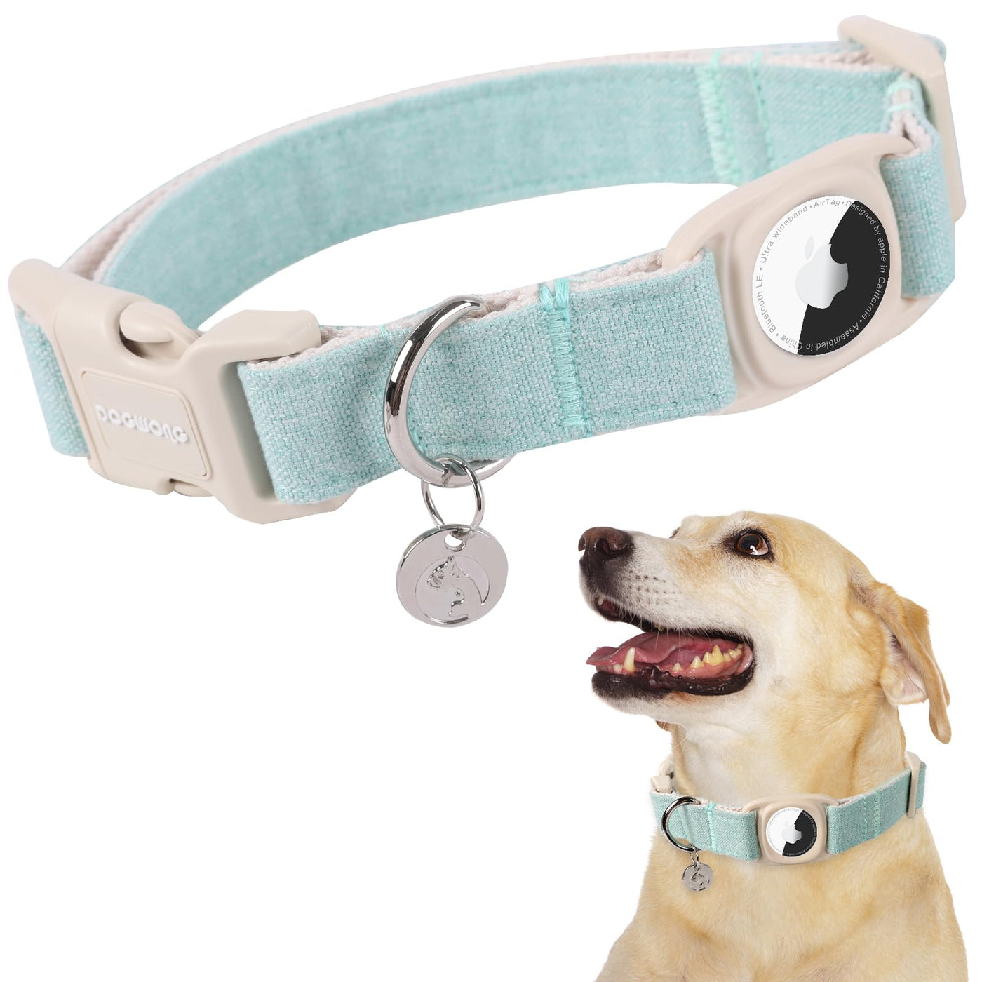 Dogwong Airtag Cotton Hemp Dog Collar, Heavy-Duty Dog Collar With Airtag Holder Green Dog Collar Durable Natural Fabric Pet Dog
