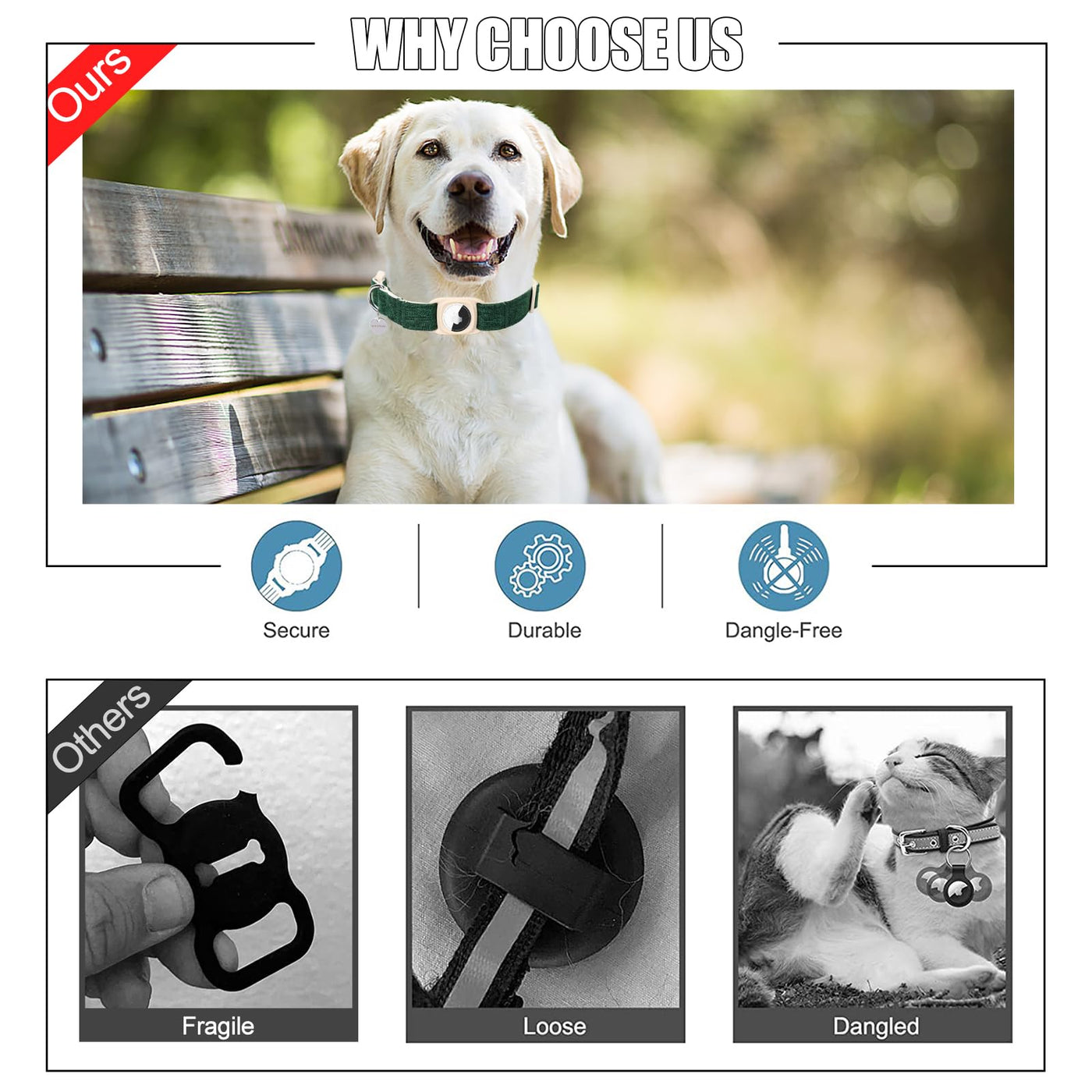Dogwong Airtag Cotton Hemp Dog Collar, Heavy-Duty With Airtag Holder For Apple Airtag, Natural Fabric, Deep Green, Small, Medium