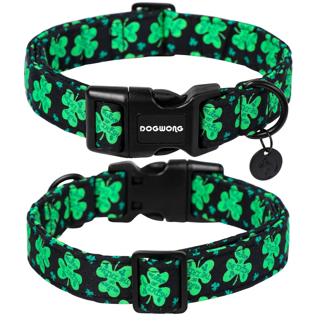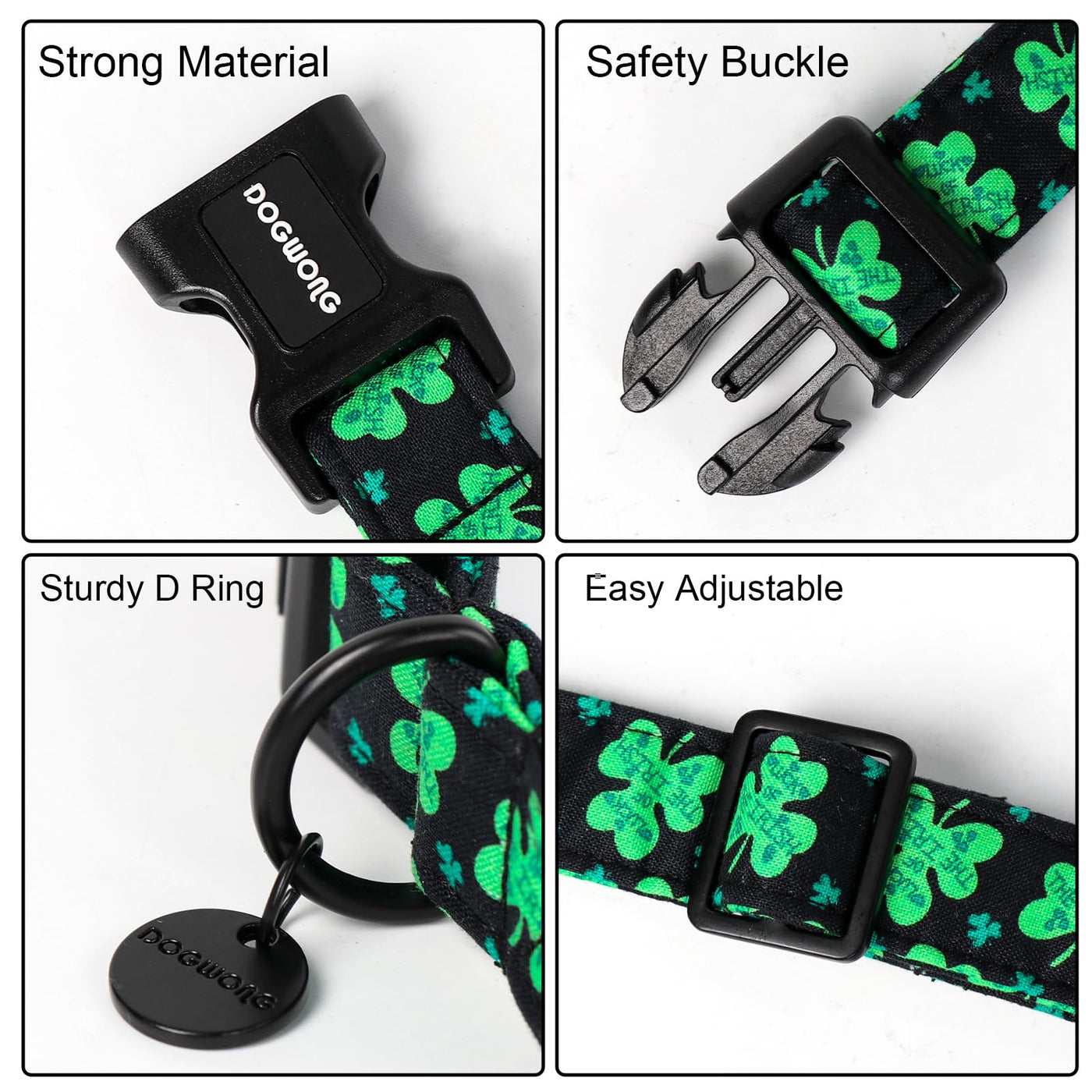 Dogwong Black St. Patrick'S Day Dog Collar, Green Lucky Clover Shamrock Dog Collar Soft Durable Adjustable Costume Bright Lucky