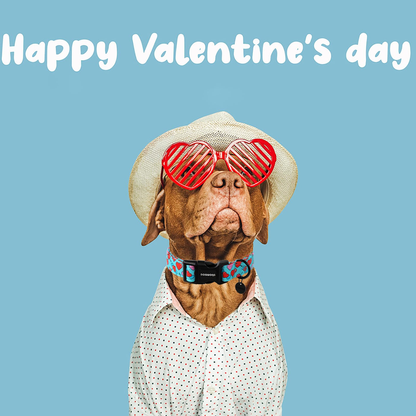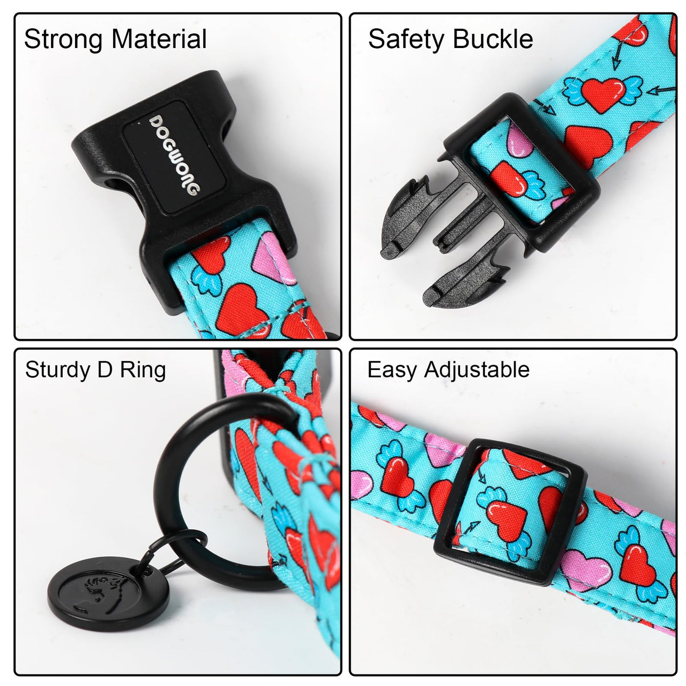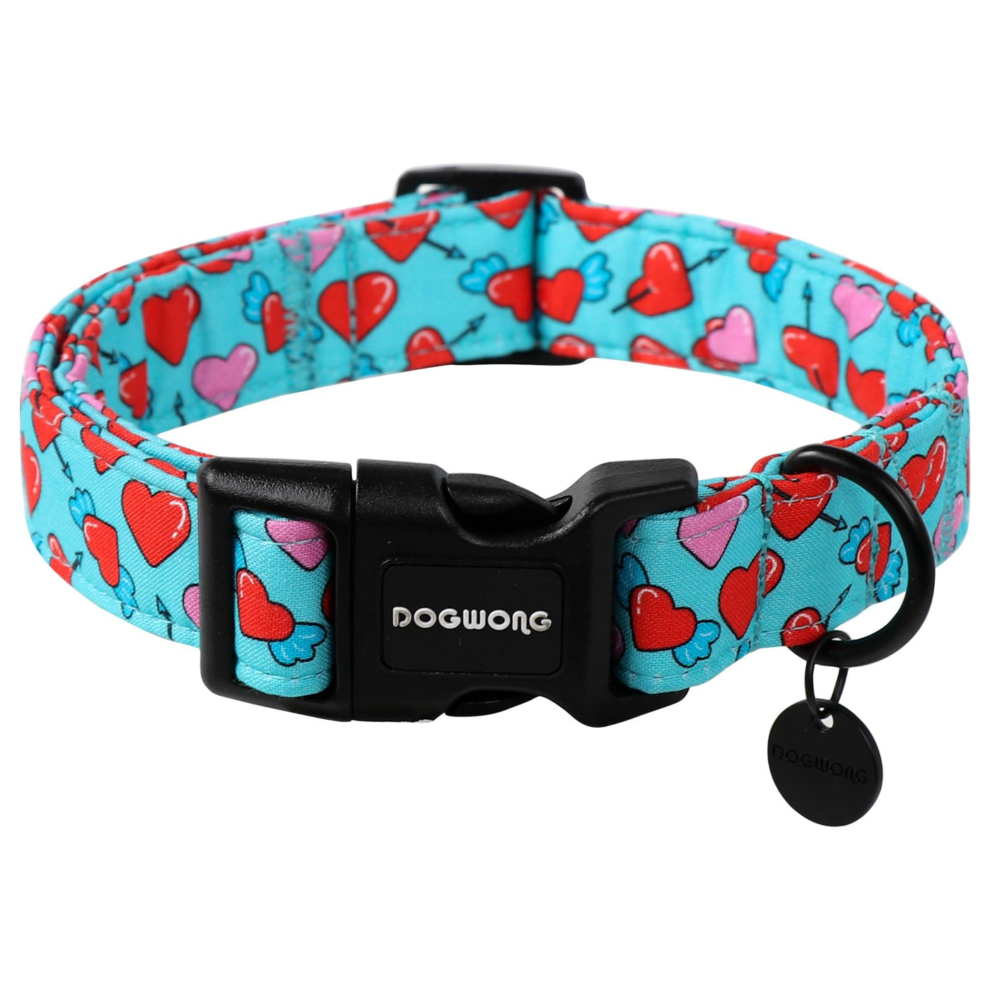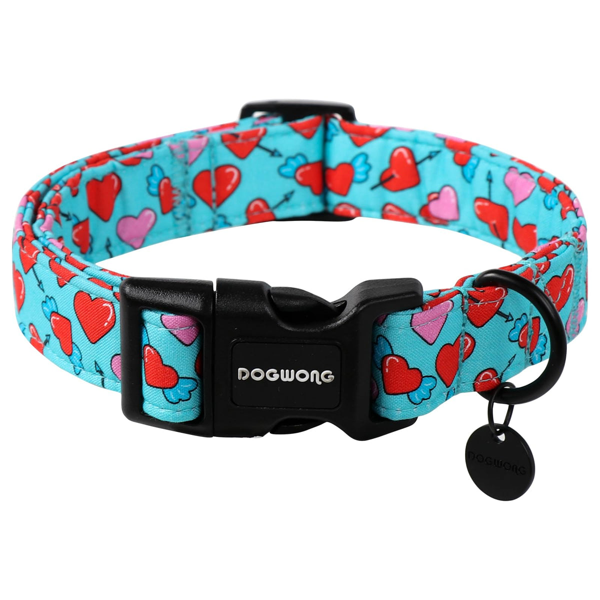 Dogwong Blue Heart Dog Collar Adjustable Soft Natural Fabric Girl Pet Dog Collar Cute Heart Valentine Puppy Necklace For Small M