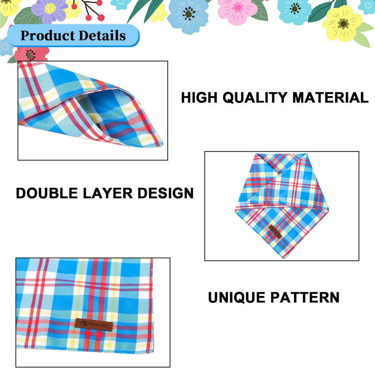 Dogwong Boy Dog Bandanas 2 Pack, Dinosaur Blue Plaid Print Triangle Reversible Rabbit Carrot Pet Scarf Durable Male Bandana For
