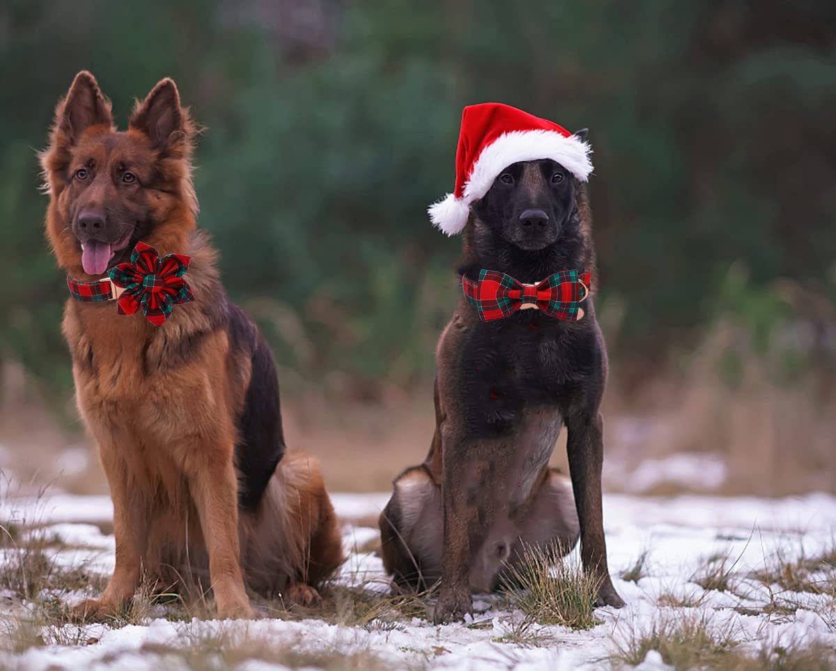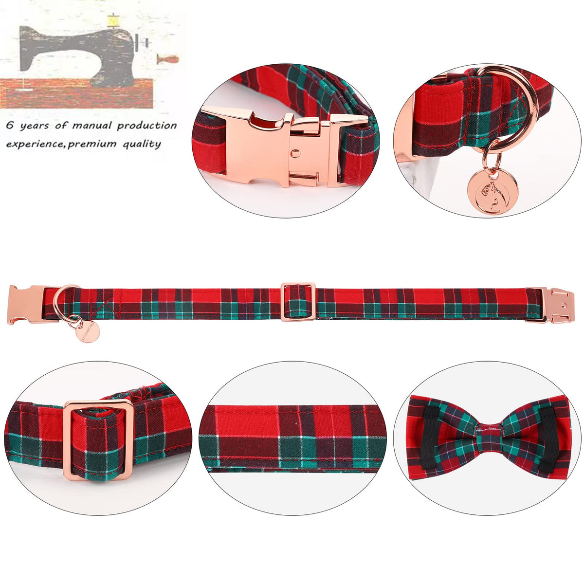 Dogwong Christmas Dog Collar With Bow Tie, Red Plaid Dog Collar Soft Durable Adjustable Cotton Red Green Tartan Puppy Collar For