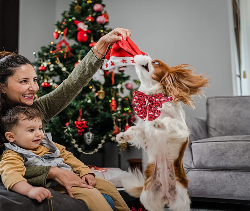 Dogwong Christmas Dog Collar With Sailor Bow, Red Plaid Deer Dog Collar Soft Durable Adjustable Cotton Puppy Collar For Small Me