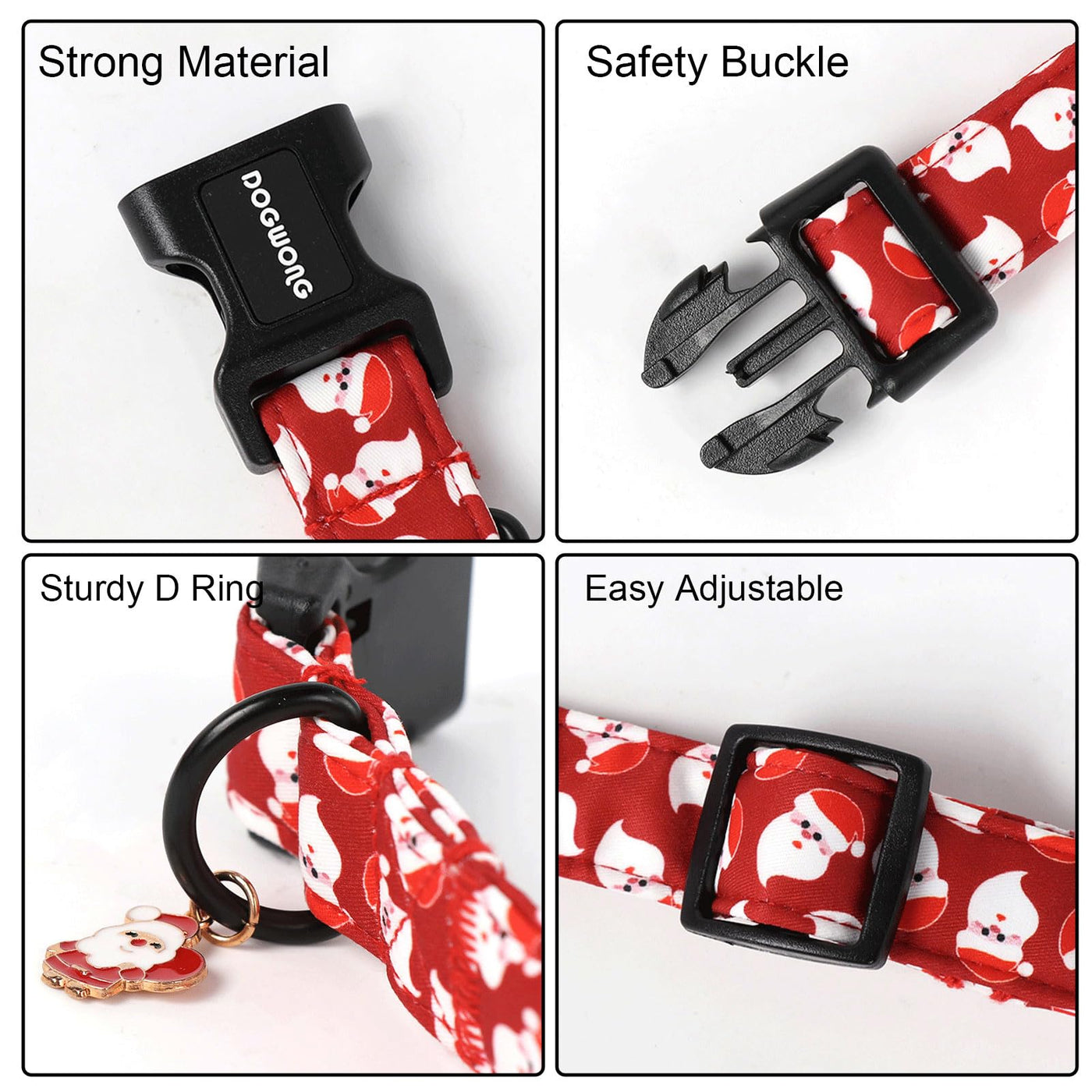 Dogwong Christmas Red Santa Dog Collar - Cute Santa Claus Christmas Dog Collar, Adjustable Designer Collar For Small, Medium, La
