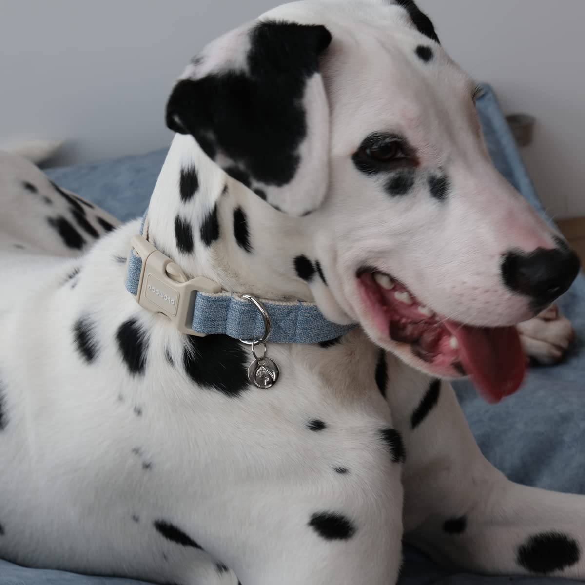 Dogwong Cotton Hemp Dog Collar - Heavy-Duty Adjustable Soft Natural Fabric Pet Collar, Baby Blue Cute Wedding Puppy Necklace For