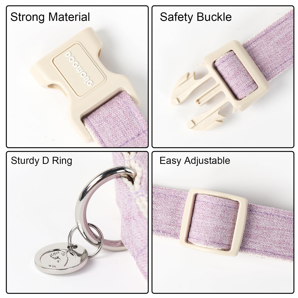 Dogwong Cotton Hemp Dog Collar, Heavy-Duty Purple Dog Collar Adjustable Soft Natural Fabric Pet Dog Collar Cute Wedding Puppy Ne