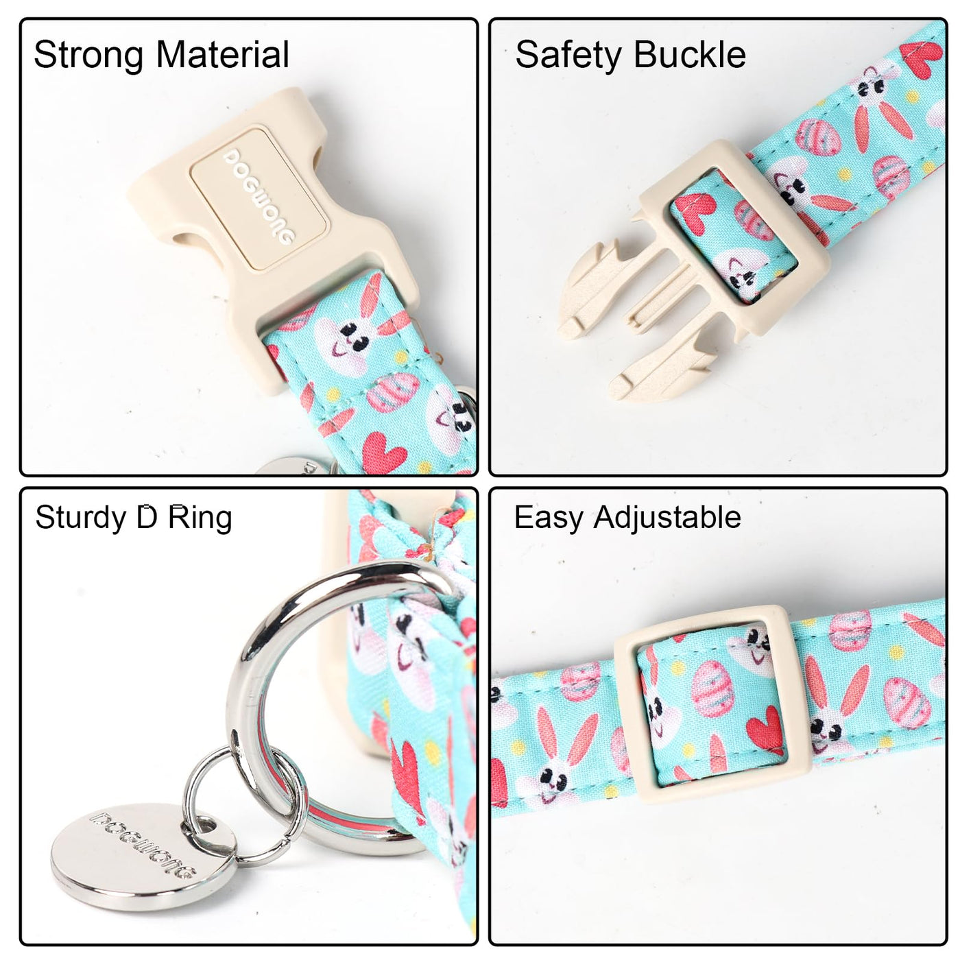 Dogwong Easter Dog Collar, Blue Bunny Egg Dog Collar Soft Durable Adjustable Costume Cute Rabbit Easter Puppy Collar For Small M