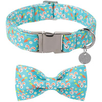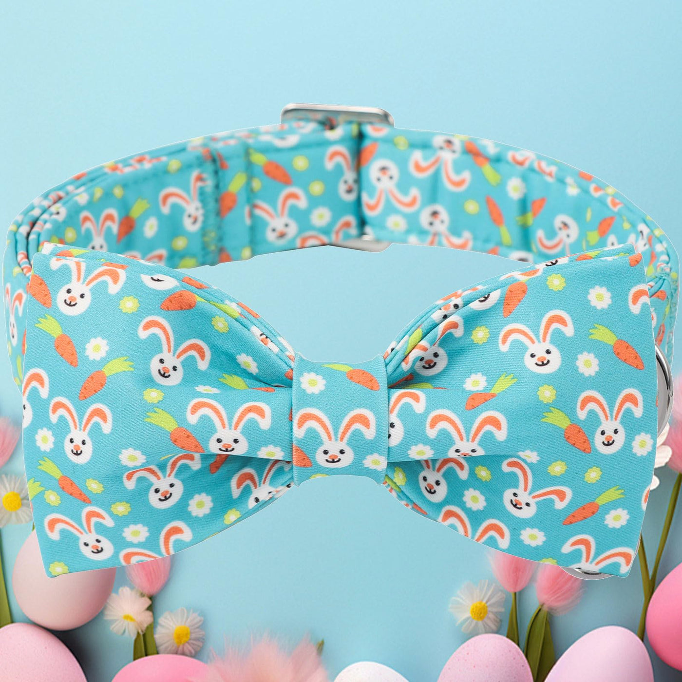 Dogwong Easter Dog Collar Rabbit Dog Collar With Bow Adjustable Bowtie Blue Bunny Dog Collars For Small Medium Large Dogs
