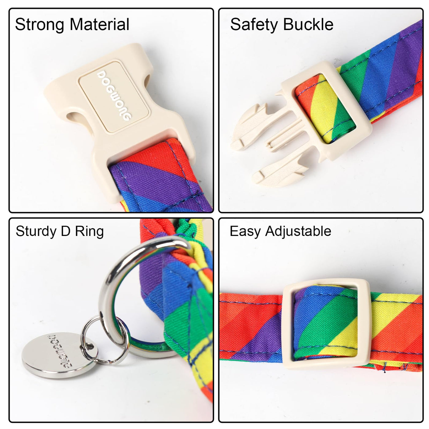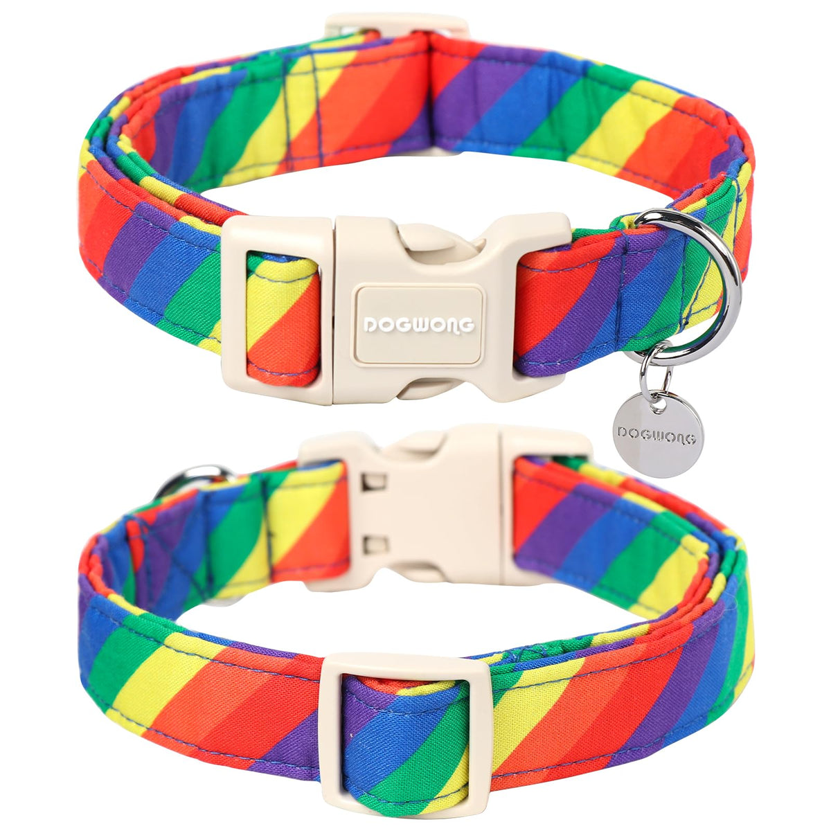 Dogwong Rainbow Dog Collar - Soft Natural Fabric, Cute Lgbtq Puppy Necklace For Small To Large Dogs