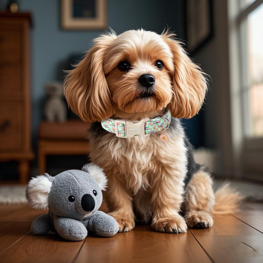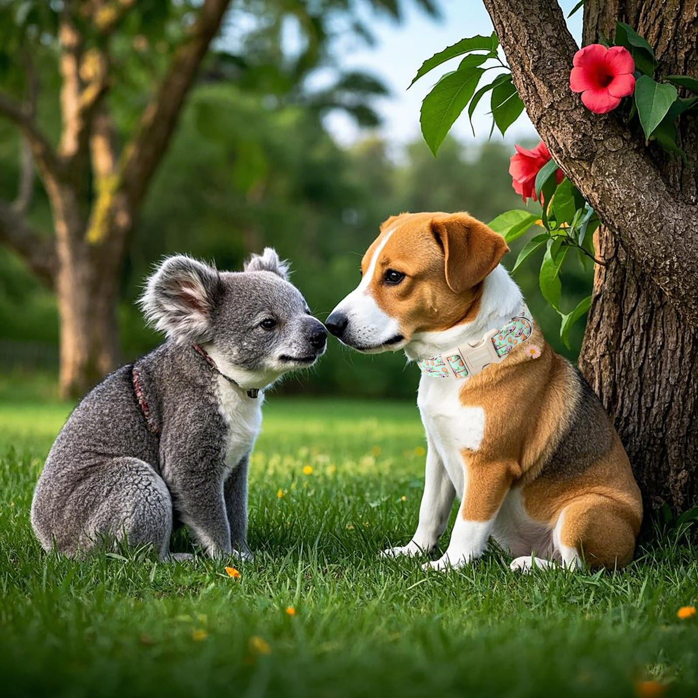 Dogwong Summer Koala Dog Collar, Green Pink Flower Dog Collars, Adjustable Cute Pet Collars Boy Girl Design Dog Collar For Small