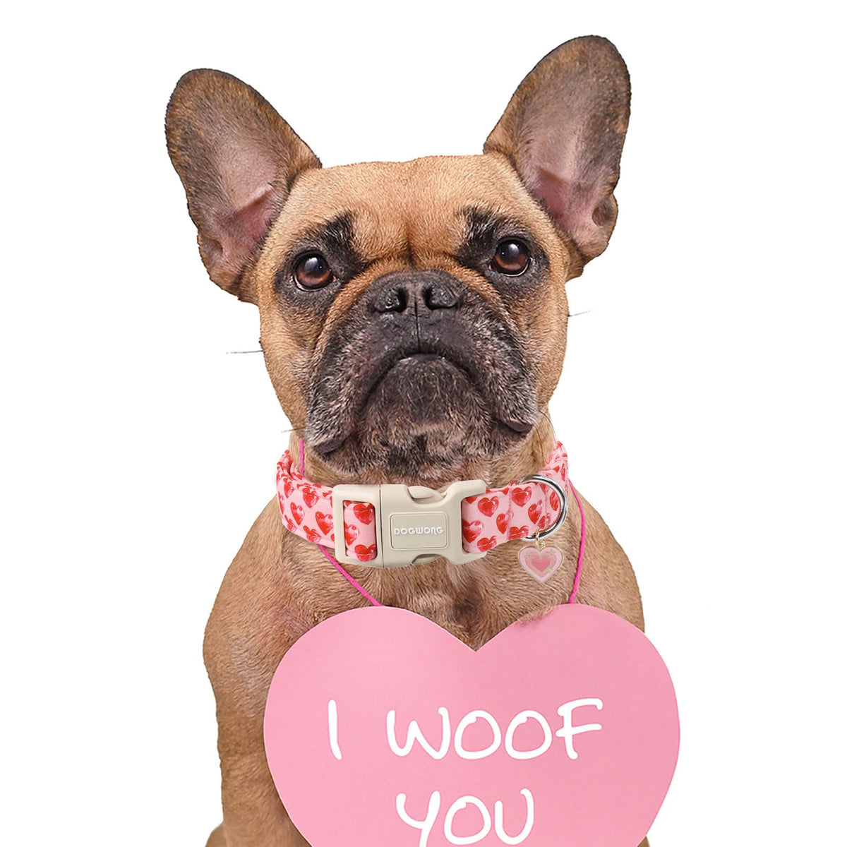 Dogwong Valentine Dog Collar- Cute Pink Heart Dog Collars Adjustable Durable Designer Valentines Day Dog Collar For Small Medium