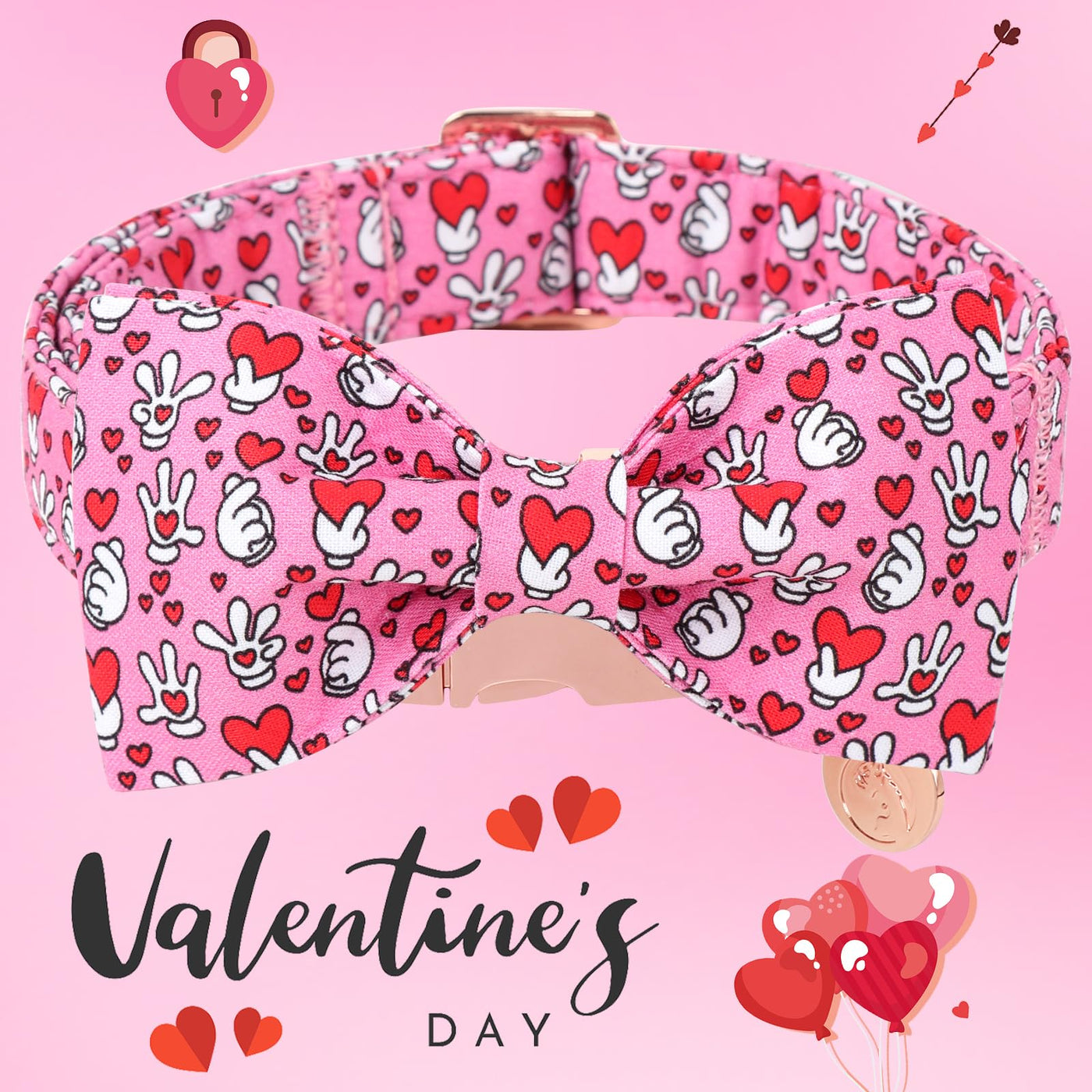 Dogwong Valentine Dog Collar With Bow, Pink Heart, Cotton, Xs, Unisex, Everyday Wear, Special Occasions